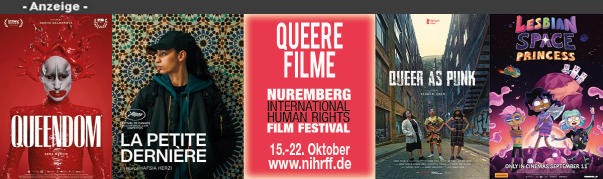 Deutschlands größtes und ältestes Menschenrechts-Filmfestival – „Nuremberg International Human Rights Film Festival“ (NIHRFF) - findet vom 15. bis 22. Oktober 2025 statt. Zum 14. Mal verwandelt sich die Frankenmetropole wieder zum Zentrum des engagierten Kinos. Insgesamt 41 politische Dokumentar-, Animations- und Spielfilme aus 41 Ländern, darunter drei Deutschlandpremieren, sind auf den Kinoleinwänden zu sehen. Das Filmprogramm des Festivals ist breit gefächert – sowohl inhaltlich als auch stilistisch. Die Themen reichen von Israel und Gaza über queere Selbstbehauptung, die kriegerischen Konflikte in Europa von Jugoslawien bis Ukraine, die Auswirkungen der Klimakrise bis hin zu Frauenrechten und Emanzipation in Afghanistan. Begleitend zum Filmprogramm lädt das Festival zu drei intensiven Podiumsdiskussionen ein, die jeweils im Anschluss an Filmvorstellungen stattfinden werden. Zentrum des NIHRFF ist das Nürnberger Künstlerhaus (Königstr. 93), mit Filmhaus, Festsaal, Soft Spot sowie der Festivallounge im Deck 1. Mit Radio Z Live Talks (täglich 21:00 bis 22:00 Uhr), Konzerten von tollen Bands (16./17./19. – 21.10. 22:00 Uhr) sowie DJ Sounds als Ausklang ab 23:00 Uhr (nicht am 18.10.) ist hier immer was los. Weitere Spielstätten: Tafelhalle (Äußere Sulzbacher Str. 60 – 62) mit Festivaleröffnung am Mittwoch 15.10. plus Eröffnungsfilm „Queendom“ mit Filmgespräch, sowie das Cinecittá Mulitplexkino (Gewerbemuseumsplatz 3). Weitere Infos auf der Filmfestival Webseite!