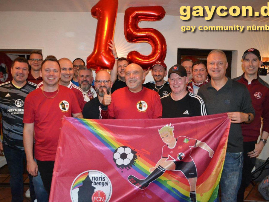 GAYCON gratuliert: zu 15 Jahren norisbengel, dem ersten offiziellen queeren Fanclub des 1.FC Nürnberg. Super Stimmung am zweiten November-Freitag bei der Vereins-Jubiläumsfeier in der KABINE-Eventlocation bei der Wöhrder Wiese, in der Nähe des Wöhrder Sees. Der schwule Männerchor, die Trällerpfeifen, sangen, als einer der Höhepunkte des Abends, für eine halbe Stunde einen Ausschnitt aus ihrem aktuellen Programm. Rund 30 Feiernde waren anwesend, außerdem schauten auch Vertretende vom Club persönlich vorbei. Ein Schlemmer-Buffet vom Estragon sowie eine Jubiläums-Torte mit norisbengel-Logo ließen niemanden hungrig. Am 06. November 2010 gründeten sie sich aus einer kleinen Gruppe engagierter Clubfans und machten den Fußball in der Region ein Stück bunter...