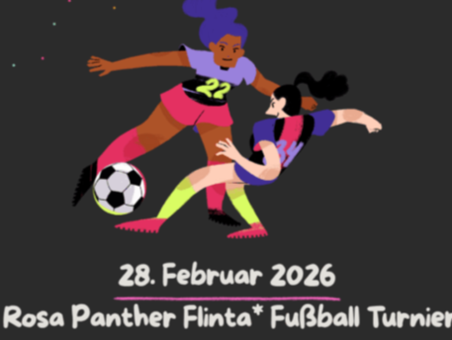 Die Frauenfußball-Abteilung des Sportvereins Rosa Panther veranstaltet wieder das „FLINTA Kickturnier“ in der Kickfabrik Nürnberg (Ferdinandstr. 21 – 23) am Samstag, den 28. Februar 2026. Anstoß ist um 14:00 (- ca. 18:00) Uhr. Für FLINTA* only! (*Frauen, Lesben, inter, nicht-binäre, trans und agender Menschen“) Wenn ihr Lust habt, bei diesem Turnier mitzuspielen, dann meldet Euch bis zum 24. Januar 2026 entweder als Team oder als einzelne Person an. Die Teams spielen 4 gegen 4. Maximal acht Spielende pro Team sind erlaubt. Alle Teilnehmenden sind bitte bis 13:15 Uhr am Turniertag vor Ort bei der Turnierleitung zwecks Anmeldung. Verpflegung vom herzhaften und süßen Buffet gibt´s gegen eine kleine Spende. Turnier Teilnahmegebühr: 13,- Euro pro Person. Einzelanmeldungen sind willkommen! Die Anmeldung erfolgt ganz einfach per E-Mail mit Angabe des Team- oder Personennamens direkt an die Frauenfußball-Abteilung von Rosa Panther. Beim Kick-Turnier sind übrigens auch Zuschauer willkommen: Anpfiff um 14:00 Uhr! PS: Nicht weit von der U-Bahn-Station „Muggenhof“ an der Stadtgrenze zu Fürth. Weitere Infos erhalten die Spielenden nach der Anmeldung rechtzeitig vor dem Turnier.