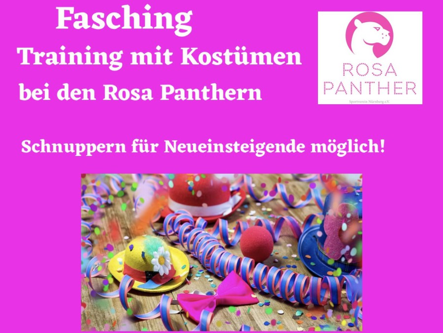 Die Tanzabteilung vom queeren Sportverein Rosa Panther lädt am Donnerstag den 12. Februar 2026 von 19:00 bis 21:00 Uhr zum Faschingstraining in der Turnhalle der Nürnberger Holzgartenschule (Holzgartenstr. 14/ Eingang Forsthofstraße) ein. Also seid kreativ und kommt im tollen Faschingskostüm vorbei. Sie freuen sich über alle Personen, auch über Neulinge die mit reinschnuppern möchten. Übrigens, auch Einzelpersonen sich herzlich willkommen! Generell gibt es in der Tanzabteilung zwei Kurse immer am Donnerstag: für Anfangende (Kurs F1: 19:00 – 20:00 Uhr) und Erfahrene (Kurs F2: 20:30 – 21:30 Uhr). An Feiertagen und in den Ferien findet kein Training statt. Zum Reinschnuppern können alle jederzeit vorbeischauen und gleich mittanzen! Folgende Tänze werden im Wechsel und nach Abstimmung mit den Kursteilnehmenden unterrichtet: Langsamer Walzer, Wiener Walzer, ChaChaCha, Rumba, DiscoFox, Salsa, Samba, Tango, Jive, SlowFox. Oder ihr meldet Euch erst persönlich per E-Mail bei der Tanzabteilung der Rosa Panther e.V.