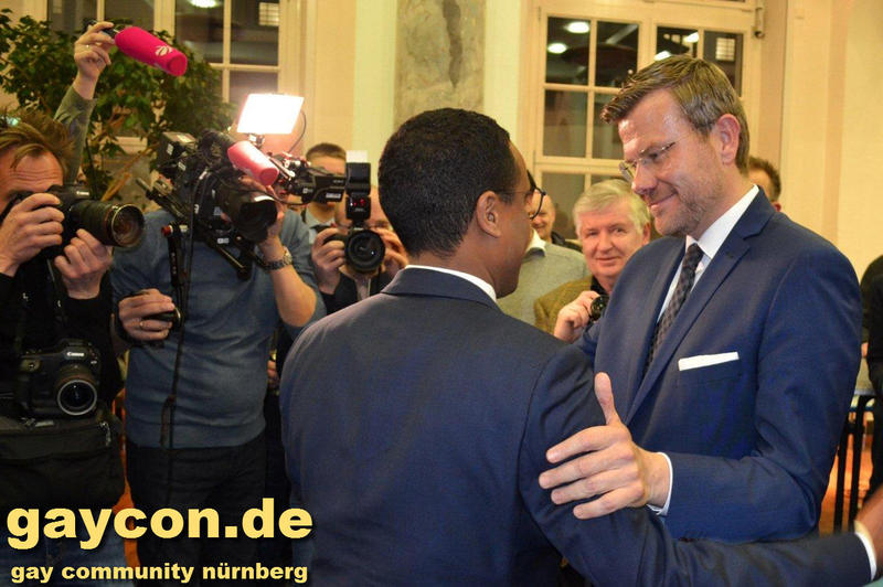 Auch der CSD Nürnberg gratulierte dem Titelverteidiger Marcus König im Presseclub Nürnberg (Foto: GAYCON.DE)