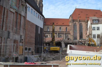 Paukenschlag in der Nürnberger Community: In einem Gemeinschaftsbauprojekt von Fliederlich e.V., Leben unterm Regenbogen e.V., der Gaststätte La Bas und einem schwulen Investor wird die Baulücke am Hallplatz geschlossen! Unter dem Titel „Regenbogen-Residenz“ wird es dazu in der nächsten Woche eine Pressekonferenz geben, um die genauen Pläne und einen Prokuristen des stillen Investors vorzustellen. Gleichzeitig wird das der Startschuss für die Bewerbung der acht geplanten Eigentumswohnungen sein.