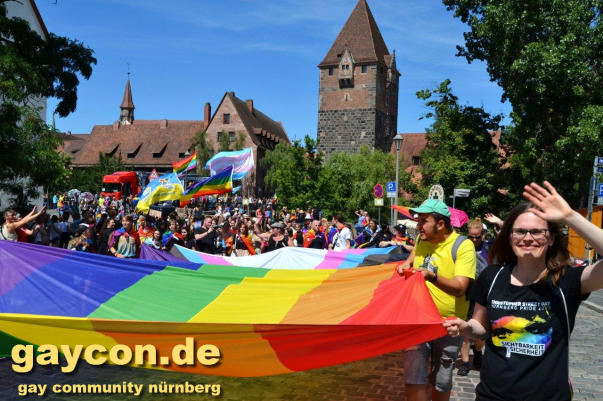 Vor über 35 Jahren wurde in der Frankenmetropole der erste Christopher Street Day (CSD) zelebriert: 1982 zog die „Gay Pride Parade“ der süddeutschen Schwulengruppen unter dem Motto ‚Schwule fordern Ihr Recht‘ mit über 500 Teilnehmern durch die Nürnberger Innenstadt. Übrigens, zum ersten CSD gibt es Filmmaterial, das mittlerweile digitalisiert ist. +++ Im Juni 1988 fand der „bayernweite CSD“ in Nürnberg statt. +++ Im Sommer 1990 organisiert die Fliederlich Jugendgruppe ‚Ganymed‘ ein Straßenfest mit 1000 Besuchern. +++ Vom 21. bis 23. Juni 1991 wurde der 2. CSD in Nürnberg an der Lorenzkirche organisiert. +++ Vom 06. bis 10. Juli 1994 feierte die Community den 3. CSD in Nürnberg unter dem Motto „25 Jahre schwul – lesbisch – stolz“. +++ Das 1. schwul – lesbische CSD Straßenfest (nach neuer Zählweise) wurde im Sommer 1998 auf dem Hans-Sachs-Platz abgehalten. Organisiert von Daniel Eckmann mit einem runden Tisch, unter Kooperation mit Fliederlich und AIDS-Hilfe Nürnberg. Mit dabei der schwule Männerchor „Die Plärrboys“. +++ Im Jahr 1999 wird der Förderverein Christopher Street Day Nürnberg e.V. gegründet. Seitdem ist dieser Verein der Organisator (mit einem Orgateam, bei dem jeder mitmachen darf) des jährlichen CSDs in der Frankenmetropole. +++ Weil der Hans-Sachs-Platz den städtischen Behörden zu klein für die vielen Besucher erschien, musste ein größerer Ort für das 3. CSD Straßenfest gewählt werden: Im Jahr 2000 wurde zum ersten Mal auf dem Jakobsplatz gefeiert +++ Die Wiederbelebung der CSD Nürnberg Demo war im Jahr 2006. +++ Zum 20. Mal wurde das CSD Nürnberg Straßenfest am 05. August 2017 organisiert: Erstmals fand hierbei im Vorlauf eine Miss*ter CSD Nürnberg 2017 Wahl statt. Dadurch erhöhte sich deutlich die mediale Aufmerksamkeit +++ Als Premiere wurde 2017 die CSD-Demo-Route schon ab dem Rathenauplatz durch die Altstadt gelegt. Dafür gab es viel Lob, denn hier erreichten die Teilnehmer mit ihren Forderungen deutlich mehr Bürger am Straßenrand +++ Neues CSD Nürnberg Logo mit dem Sinwellturm der Nürnberger Kaiserburg in Regenbogenfarben 2018 +++