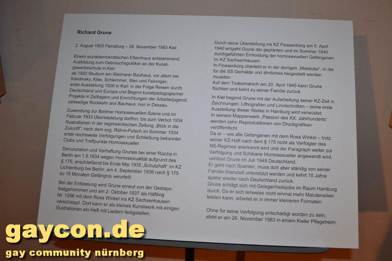 Am letzten Januar-Freitag wurde die beachtenswerte Ausstellung „Schwules Leiden im KZ Flossenbürg“ in der St. Egidien-Kirche (Egidienplatz 12) eröffnet. Rund 80 Gäste verfolgten die bewegende Vernissage mit Konzert. Kurator Prof. Hans Simon Pelanda war ebenfalls zu Gast. Musikalisch umrahmt hat das Ensemble Einklang u.a. mit Werken wie der Mauthausen-Kantate von Mikis Theodorakis, Musik aus dem KZ Theresienstadt und einer Eigenkomposition von Marcel Rode. In der beeindruckenden Akustik der St. Egidienkirche kam die Aufführung besonders zur Geltung. Zwischen den Musikstücken zitierte Michael Aue detailreiche schreckliche Erlebnisse schwuler Männer aus dem Buch „Die Männer mit dem Rosa Winkel“. An dieser Stelle wurde sicher jedem Anwesenden noch mehr bewusst, wie wichtig das Erinnern ist. Die Ausstellung zeigt Werke der beiden Künstler Hugo Walleitner und Richard Grune, die wegen ihrer Homosexualität im KZ Flossenbürg inhaftiert waren und ihre Erfahrungen nach 1945 künstlerisch verarbeiteten. Im KZ standen die Gefangenen mit dem „Rosa Winkel“, mit dem sie wegen ihrer Homosexualität nach dem § 175 verfolgt, gefangen genommen und stigmatisiert wurden, in der Hierarchie auf der untersten Stufe. Oftmals wurden sie zusätzlich gequält und besonders schikaniert. Der Maler Richard Grune (1903-1983), ein Bauhausschüler u.a. bei W. Kandinsky und P. Klee, sowie der österreichische Designer und Zeichner Hugo Walleitner (1909-1982) schufen mit ihren Lithographien und Zeichnungen beeindruckende Zeugnisse ihrer eigenen, aber auch der Erfahrungen anderer Leidensgenossen mit Demütigung, Erniedrigung und schließlich Ermordung vieler Kameraden. Organisiert wurde die Ausstellung in Zusammenarbeit mit der „Arbeitsgemeinschaft ehem. KZ Flossenbürg e. V.“ dem Bündnis gegen Trans- und Homophobie und dem queeren Zentrum Fliederlich e. V. +++ Öffnungszeiten täglich bis 23. Februar 2020 von 11:00 bis 16:00 Uhr. +++