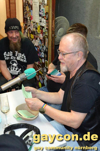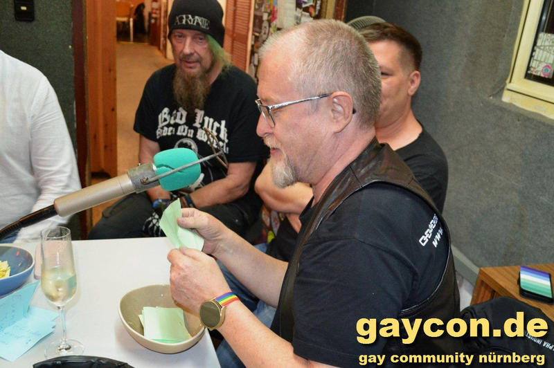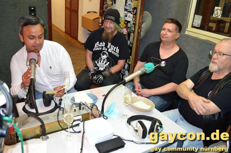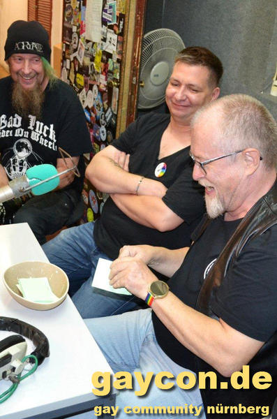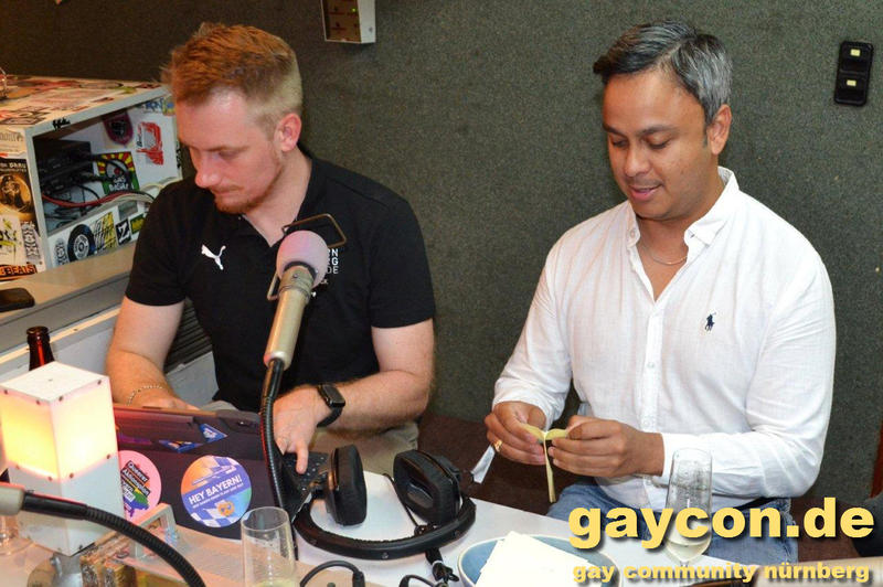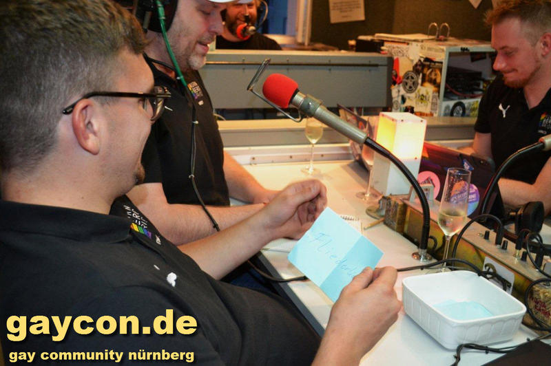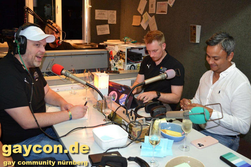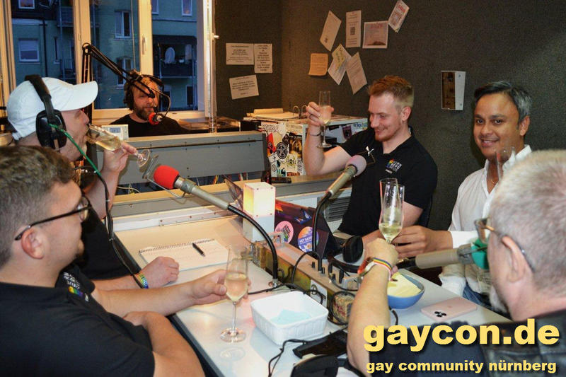 In einer Sondersendung feierte am dritten Juni-Donnerstag das queere Magazin „Radio Gays“ auf Radio Z seinen 30. Geburtstag. Die Lokalen-Leidenschaften mit Lisa und Andreas stellten ihre Sendestunde zur Verfügung und waren im Studio vor Ort, deshalb konnten gleich zwei Stunden Programm über den Äther gehen. Moderatorin Uschi Unsinn schwelgte in Erinnerungen der letzten dreißig Jahre, kramte auch Anekdoten und Sendeausschnitte aus dem Archiv. Bastian und Andreas vom CSD Nürnberg Verein waren ebenfalls anwesend und überraschten mit einer Regenbogen-Jubiläumstorte, einer liebevollen Ganztages-Handarbeit von Andis Schwester. Einer der seltenen Momente, wo Frau Unsinn spontan sprachlos blieb. Natürlich wurde gemeinsam feucht fröhlich auf das Jubiläum angestoßen. Zusätzlich labten sich die Studiogäste an Pizzastücken, vor der leckeren Jubiläumstorte zum Nachtisch. Geschichtlich interessant, das Zitat aus einem Bericht zum Alternativen Medienpreis: „Als 1987 Radio Z aus Nürnberg als erstes freies Radio in Bayern eine Sendelizenz beantragte, gab es mit nur hauchdünner Mehrheit eine Sendegenehmigung vom damaligen Medienrat. Anstoß nahm das Gremium vor allem an dem Vorhaben von Radio Z, eine wöchentliche Schwulensendung ins Programm zu nehmen. Der damalige Landtagsabgeordnete meinte: ...‘wenn wir heute sagen die Zielgruppe der Schwulen darf senden, dann kommen morgen die Lesben und übermorgen die Fixer‘.“ Zur Jubiläumssendung schaute GAYCON vorbei, und hat einige Impressionen eingefangen.