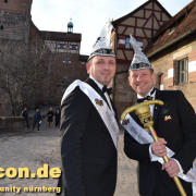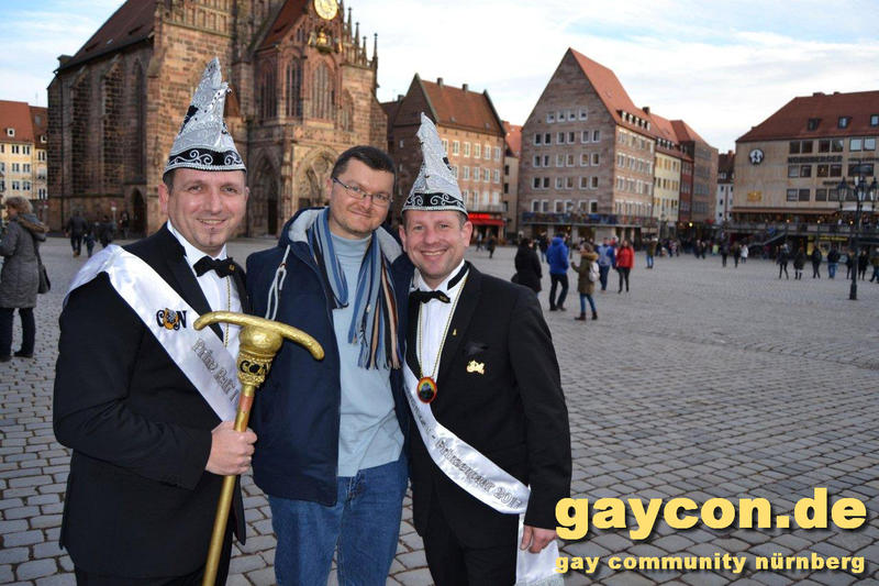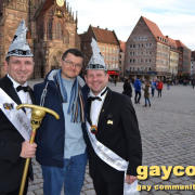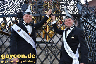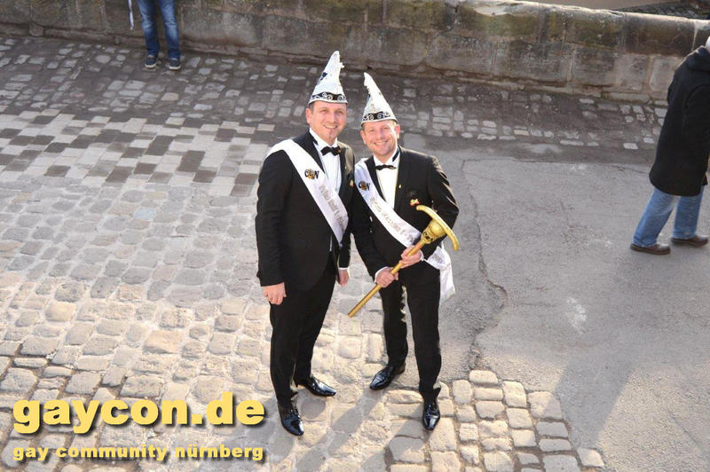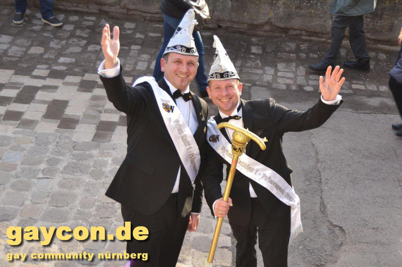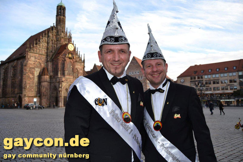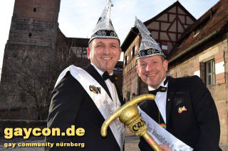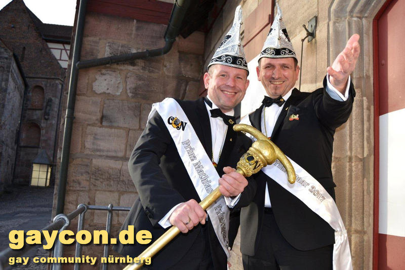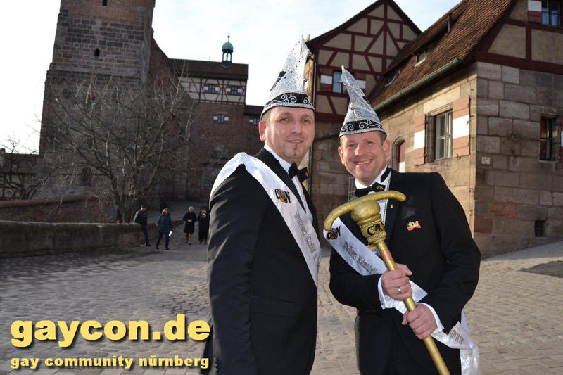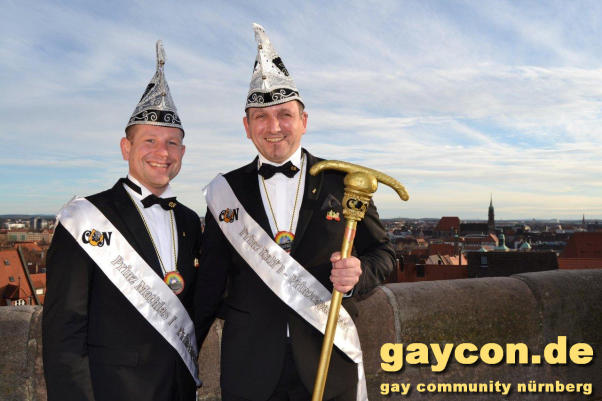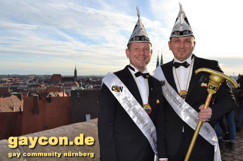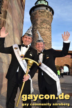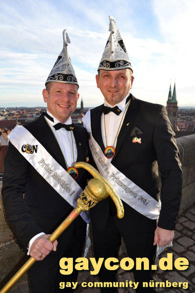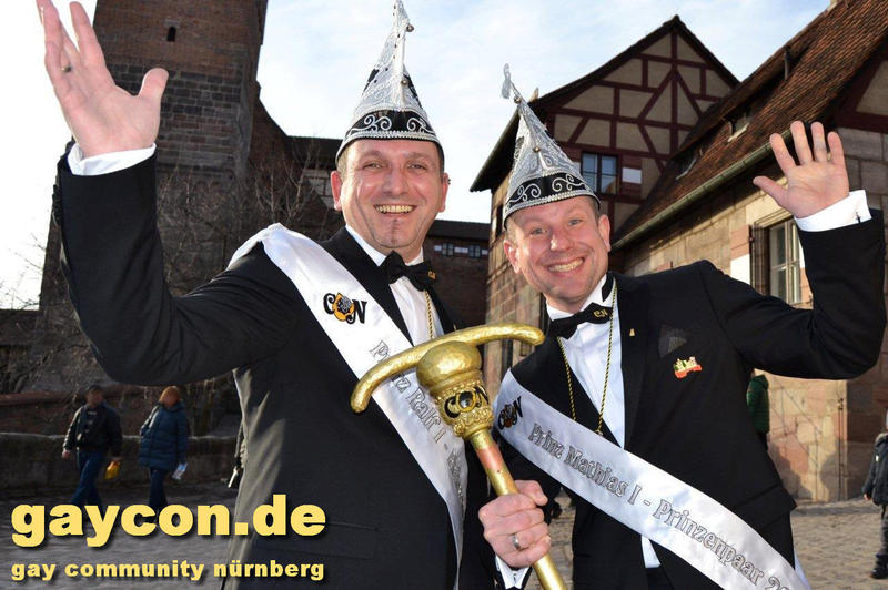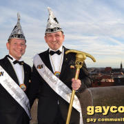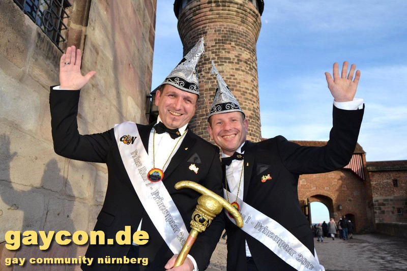 Ein neues Männerprinzenpaar aus Franken! Seit der ersten Prunksitzung der Karnevalgesellschaft „Coburger Narrhalla“ im Januar 2017 sind Ralf (47) und Mathias (36) Kühne offiziell im Amt. Die Würdenträger Ralf I. & Mathias I. nahmen das Marketing-Motto „Coburg ist bunt“ beim Wort und haben ihre Orden entsprechend mit einem Regenbogen entwerfen lassen. Die Farben der LSBTI-Szene sollen auch deutlich machen, dass noch längst nicht alle Rechte gleichgesetzt sind. Als hoheitlicher Besuch kamen die frisch gekürten Prinzen nun zum Interview in die Frankenhauptstadt. Die Nürnberger Burg lag standesgemäß zum Fotoshooting im besten Sonnenlicht. In den Jahren 2015 und 2016 regierten Gerald Fischer und Dirk Stauch bei dem „Langstädter Fousanachtern“ in Küps/ Oberlangenstadt im Landkreis Kronach die zweijährige Faschingssaison als erstes fränkisches Männerprinzenpaar überhaupt (GAYCON berichtete).