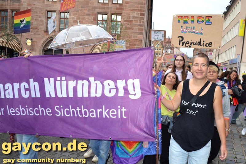 +++ Samstag 28. Juli 2018, 21:00 Uhr: dyke*march Pre-Party – Feuer&Flamme (Peter-Henlein-Str. 94) +++ Freitag 03. August 2018, 18:00 Uhr: dyke*march Nürnberg – Start Opernhaus (Richard-Wagner-Platz 2) // 21:00 Uhr: dyke*march After-Show-Party – Feuer&Flamme (Peter-Henlein-Str. 94) +++ Samstag 04. August 2018, 12:15 Uhr: Sisterhood-Fußgruppe und Dykes on Bikes – CSD Nürnberg Demo – Startpunkt Berliner Platz