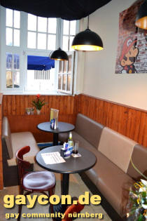 „Ich hatte in der Corona-Auszeit viel nachgedacht und sehe das Einfachso als neue Chance für mich, ein eigenes Konzept zu verwirklichen. Die Feierlaune und die Besuchermischung von früher schwebten mir vor. Einfach mit allen locker reden und Spaß haben. Ich möchte, dass die Leute wieder Lust bekommen in die Kneipe zu gehen“, betont Martin, der bewusst das Lokal auch für die Community retten wollte. „Ich möchte das Aussterben der schwulen Szene stoppen, mit Investitionen in Details und Qualität ein Lokal erschaffen, wo die Gäste wieder gerne verweilen und vorbeikommen. Wenn Veranstaltungen wieder erlaubt sind, sollen regelmäßig Shows und Events stattfinden. Aber auch Bingo- und Karaoke-Abende.“ Mitte Juli wurde mit der Renovierung begonnen. Es gab viel zu tun. Die alten Sitzschalen-Bänke rausreißen, Wände in den Rohbauzustand zurückversetzen und die Toiletten mit Fliesen komplett sanieren, den Lagerraum vergrößern. Die Technik der Kühlung, Spülmaschine und Kaffeemaschine mussten erneuert werden, eine digitale Musikbox mit WLAN ist nun installiert. Die Wände bekamen einen neuen Putz mit cremefarbenem Anstrich plus einer hellen Holzverkleidung im unteren Bereich. Bequeme Sitzbänke bieten viel Platz in den Fensterecken des Lokalraumes. Schwarze Lampen mit Goldreflex-Effekt sorgen für angenehmes Licht. Ein Hingucker ist die Decke, die eine Verkleidung aus feuerfestem Stoff erhielt, als schwarzer Baldachin-Himmel. Die Fenster sind neu gestrichen und die große Gartenterrasse mit Blick auf das Germanische Nationalmuseum bekam eine neue Holzbestuhlung mit flexibler Tischgröße. Ein Glück, dass nur die Hausfassade unter Denkmalschutz steht. „Ihr seid ja langweilig“, mit diesen Worten vom Vertreter des Ordnungsamtes der Stadt Nürnberg hatte Martin die Erlaubnis zur Wiedereröffnung bekommen. Martin war erst irritiert über die Aussage, bis er begriff, es gab nichts zu beanstanden.