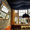 „In den Lockdown-Wochen hatte ich viel Zeit nachzudenken. Ich stellte mir die Frage, was kann ich weiter verbessern, was gefällt mir immer noch nicht. Die bisherige Optik war schon schön, aber damals kurz vor der Wiedereröffnung musste alles schnell gehen. Das Ergebnis hat mir noch nicht so richtig gefallen. Mit den bisherigen Bildern an der Wand war ich auch noch nicht zufrieden“, erzählt Martin, der die Wände nach der ersten Renovierung noch zu langweilig fand. „Ich erkannte, dass mehr Wärme, mehr Gemütlichkeit und ein großer Spiegel im Lokal fehlen. Mein bester Freund aus Frankfurt und mein Schwager haben die Renovierung als Geschenk für mich umgesetzt!“ Der Windfang um die Eingangstür hat nun auf der Lokalinnenseite eine Fachwerk-Optik bekommen. Die anderen Wände eine Vintage-Mauerwerk-Tapete und der Kaminvorsprung Ziegelstein-Look. Beim großen Spiegel im goldenen Rahmen bleibt nun der Blick überrascht hängen. Er macht den Raum nun auch optisch größer. Alte Holzleitern zieren die Wände, können aber gleichzeitig als Garderobe von den Gästen benutzt werden. Auf der anderen Seite, dem großen Spiegel gegenüber, wurde ein altes Holzfenster platziert. Es wird als Bilderrahmen genutzt, in dem zukünftig Papierbilder von tollen Events von den Gästen betrachtet werden können. Aktuell sind die GAYCON Halloween Fotos dort zu sehen. Die hintere Wandfläche bei den Spielautomaten soll noch an den neuen Look angepasst werden. Hier will sich Martin noch einen besonderen Kick für die Ecke einfallen lassen. Übrigens, auch die Wände der Toiletten strahlen nun ganz frisch in Metallic Grün. Martin plant schon für die längere Zukunft auch Veränderungen auf der Biergarten-Terrasse ein. Da lassen wir uns gerne überraschen. Die Teil-Renovierung ist wirklich gut gelungen. Schaut mal bei Martin und seinem Team vorbei.