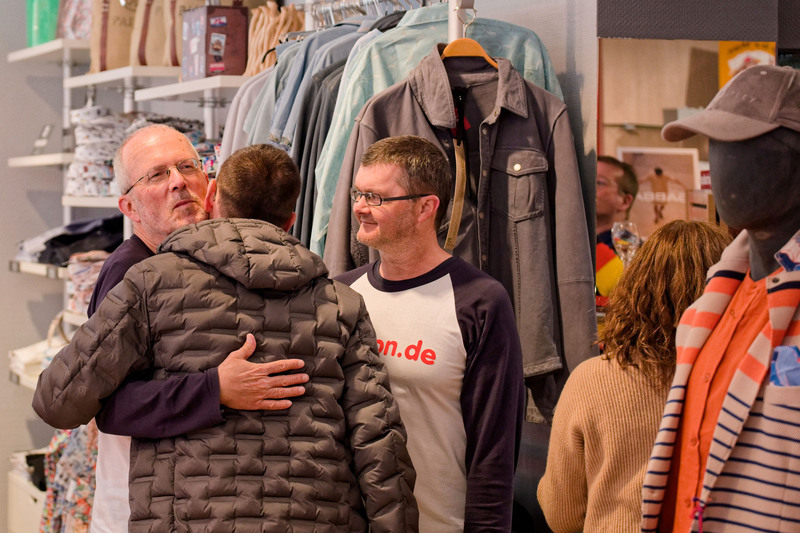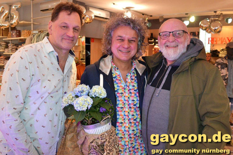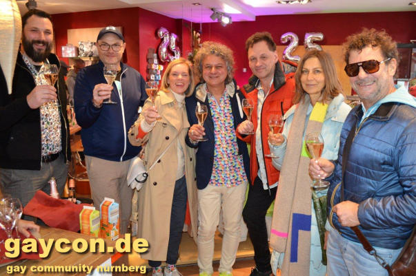 Am dritten April-Samstag lud Harald Lehmeier in sein Männer-Modegeschäft zum 25jährigen Jubiläum ein. Zahlreiche Stammkunden kamen über den Tag verteilt herein, natürlich auch viele aus dem engsten Freundeskreis. So schauten auch Ex-Nationaltorwart Andreas Köpke und der fränkische Kabarettist Bernd Regenauer privat vorbei. Das wechselhafte Wetter gönnte dem Publikum auch viele Sonnenstrahlen für die Raucher vor dem Laden, extra zur Feier des Tages. Mit DJ Musik, Sekt/ Getränken, Fingerfood und Glücksrad verwöhnte Harald seine Gäste. Ganz in seinem Element gab es neben all dem Spaß auch fachkundige Beratungen. Am 25. März 1999 öffnete der Männer-Ausstatter in der Winklerstraße 1, direkt an der Pegnitz, in der Nähe des Hauptmarktes. Eigentlich sollte schon früher gefeiert werden, doch personelle Engpässe sorgten dafür, dass Harald das gesamte Tagesgeschäft längere Zeit komplett alleine bewältigen musste. „Es war eine ganz tolle Feier. Andi Köpke war vor 25 Jahren schon bei meiner Eröffnung dabei. Er ist ein feiner Mensch ohne Star-Allüren und ist normal geblieben. Ich bin mit ihm teilweise alt geworden, und es ist eine Freundschaft entstanden“, betont Harald, der sich zum Jubiläum auch eine Neugestaltung seiner Webseite gönnte. „Die ist großartig geworden!“