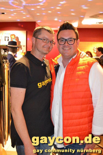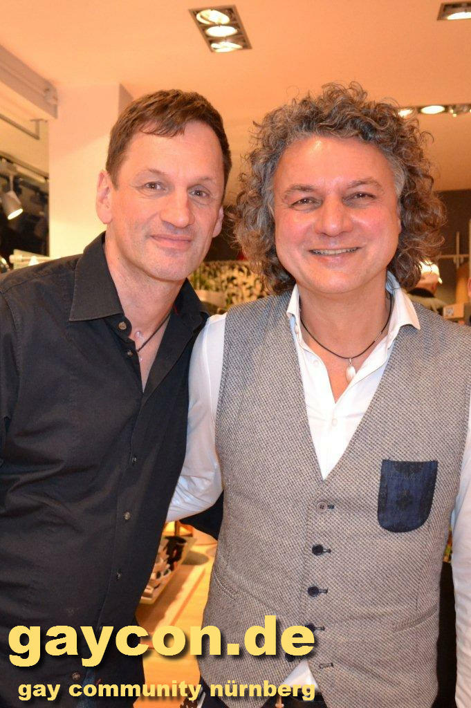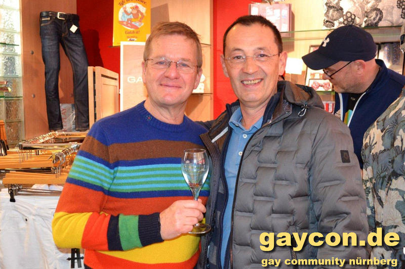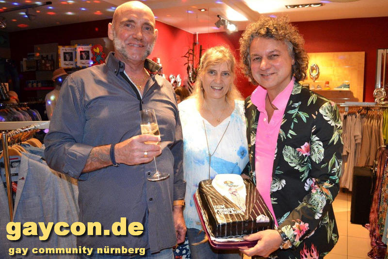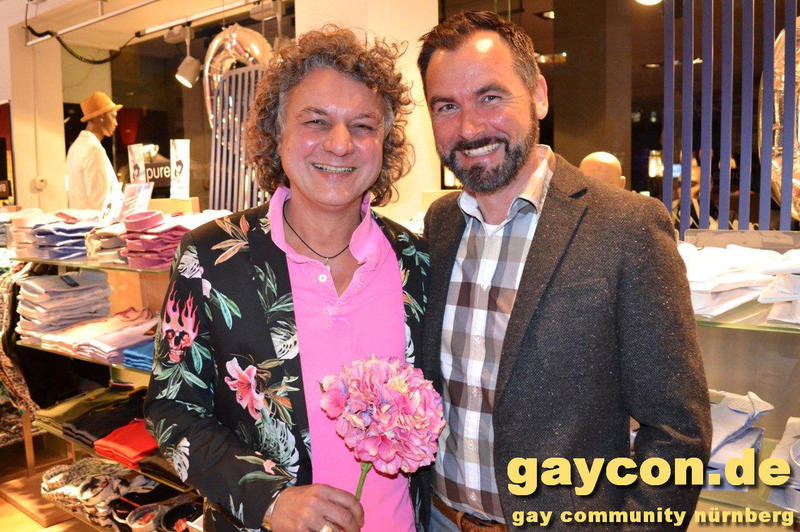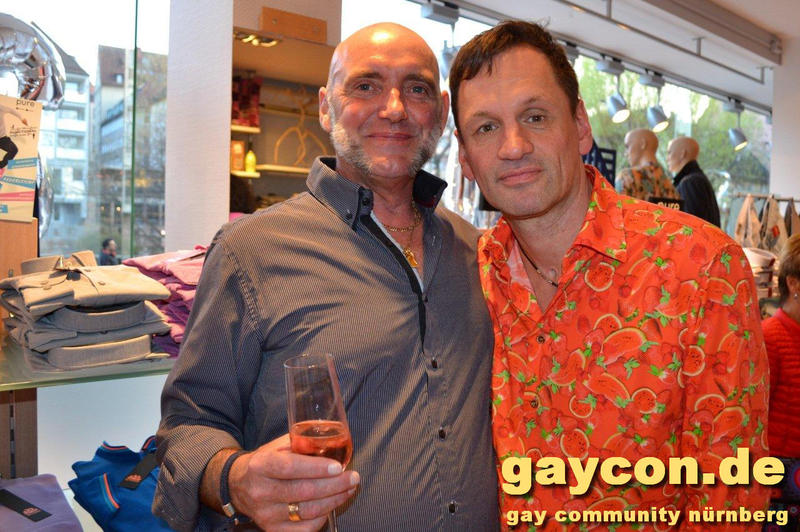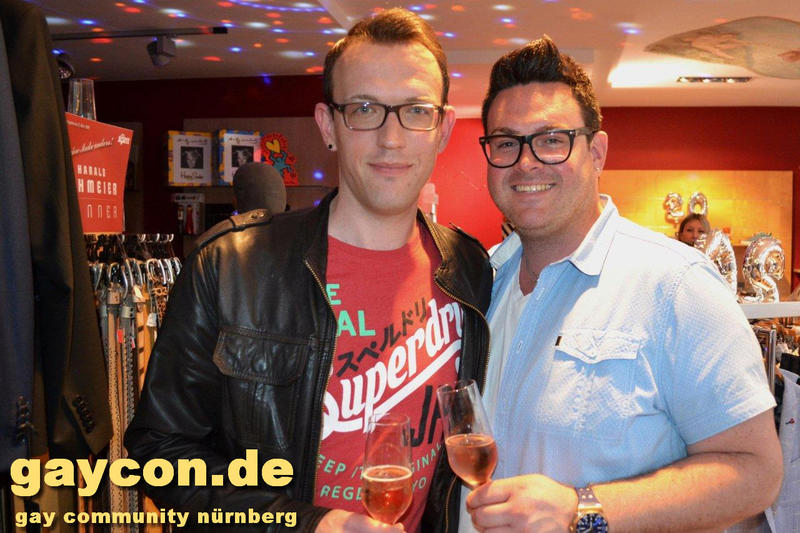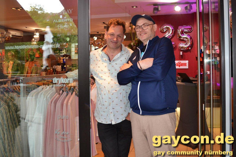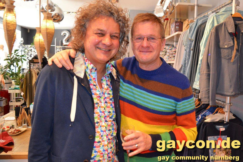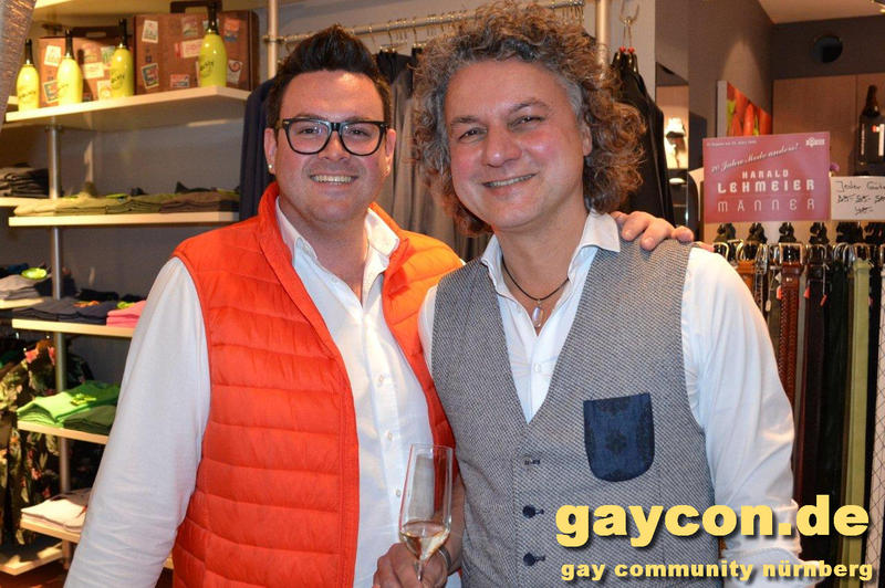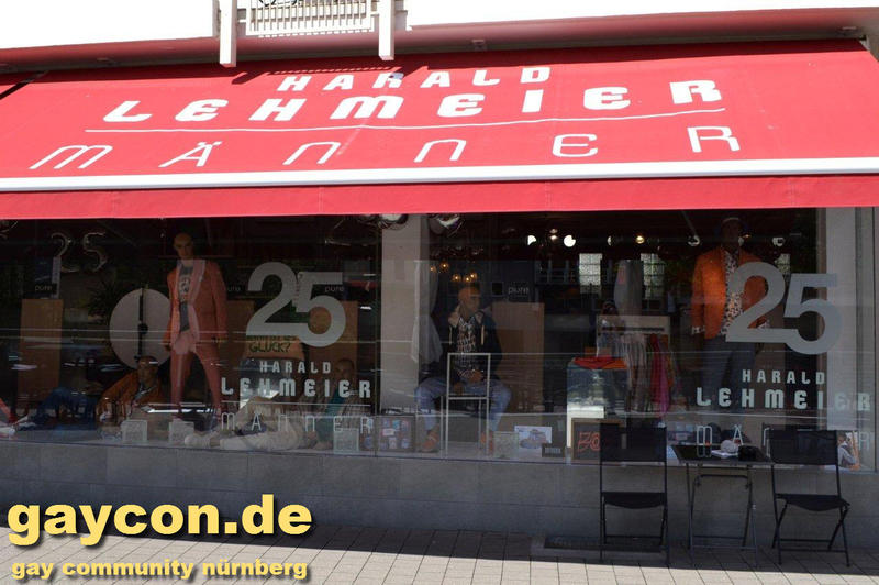 Nachdem Harald im Alter von 19 Jahren in die erste eigene Wohnung zog, ließ auch die erste feste Beziehung nicht lange auf sich warten. Zu seinem damaligen Freund, ebenfalls aus der Modebranche, hat er noch heute einen guten Kontakt. Sein Coming out bezeichnet er als heftig in einer Zeit des Verheimlichens, wo vor Einlass in Lokale wie das Savoy oder Why Not noch geklopft oder geklingelt werden musste. „Im Why Not trafen sich Nutten, Zuhälter, Schwule und schrille Typen. Es war aber auch eine coole Zeit“, erinnert er sich. Beim Faschingsball im Lessing-Saal des Deutschen Hofs hat er im sexy Frauenkostüm manchen Heteros den Kopf verdreht. „Ihr glaubt nicht, wie viele Telefonnummern ich bekommen habe! In hochhackigen Schuhen laufen war kein Problem für mich, nach vielen Jahren Training im Formationstanz“, schmunzelt Harald. „Heute lebe ich offen und verstecke mich nicht. Dafür baggern mich gelegentlich Mädels an. Für viele bin ich der Verrückte mit dem Männerladen.“ In aller Stille feiert er mit seinem Lebenspartner Uwe noch ein zweites schönes Jubiläum in diesem Jahr, sie sind seit zehn Jahren zusammen. Schicksalstag war der 9. April 2009 im Lokal Bert´s in der Südstadt. „Ich saß in der Kneipe meines besten Freundes und klagte ihm meinen Frust darüber, dass ich gerne eine Beziehung hätte. Bert ließ mich in diesem Zustand nicht heim und hat mir immer wieder nachgeschenkt“, grinst Harald. „Uwe hatte in der Meistersingerhalle gearbeitet und konnte an diesem Tag früher raus. Auch ihn zog es ins Bert’s und so kam es, dass wir plötzlich nebeneinander saßen.“ Das Schicksal arrangierte die Zeiten genau richtig. Heute gehen sie gerne gemeinsam auf zahlreiche Veranstaltungen in der Nürnberger Community. Haralds eigene Feier zum 20. Firmenjubiläum Ende März hat beiden viel Spaß bereitet. Zahlreiche Freunde, Stammkunden und Geschäftspartner schauten vorbei. Zukunftspläne: Sieben Jahre will er seinen Laden noch behalten. Was bei ersten Stammkunden schon die Frage auslöst, wo sie sich denn anschließend unter Fachberatung in die bunten schrillen Stoffe werfen sollen. Der trotz allen Erfolgs völlig normal und sympathisch gebliebene Herrenausstatter nimmt‘s gelassen: „Wenn bis dahin alles so läuft wie bisher, dann bin ich zufrieden.“