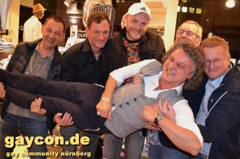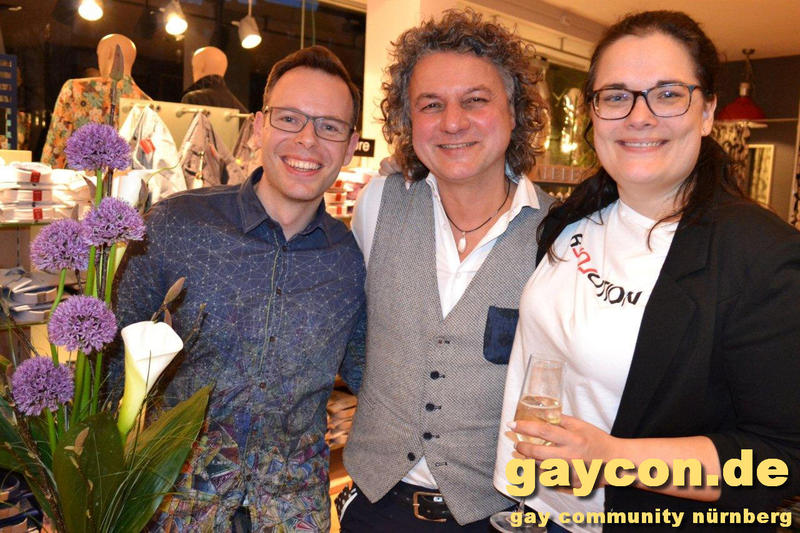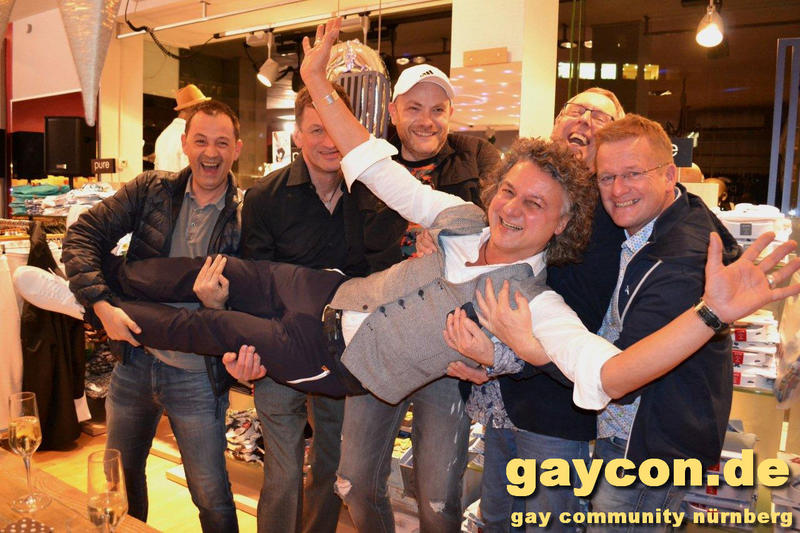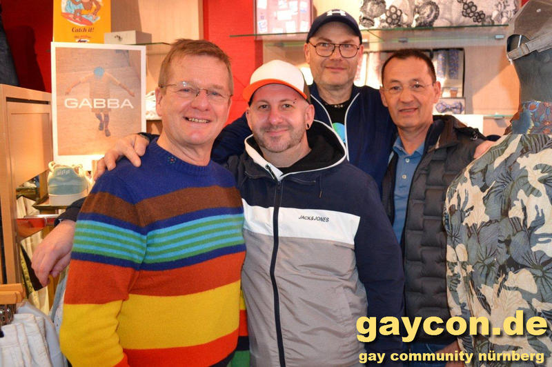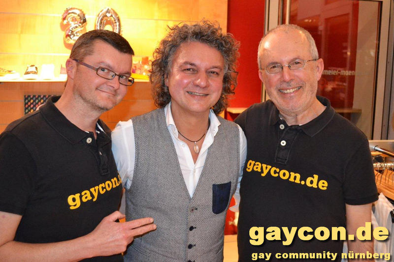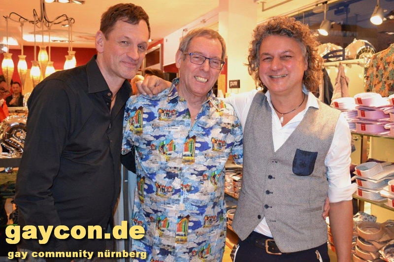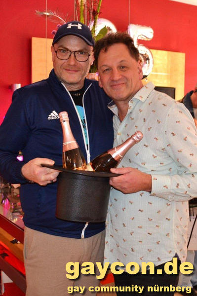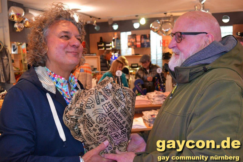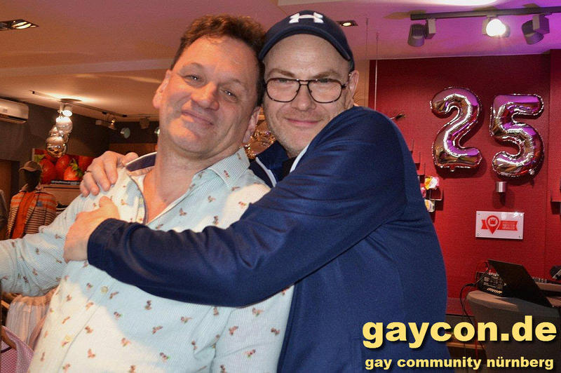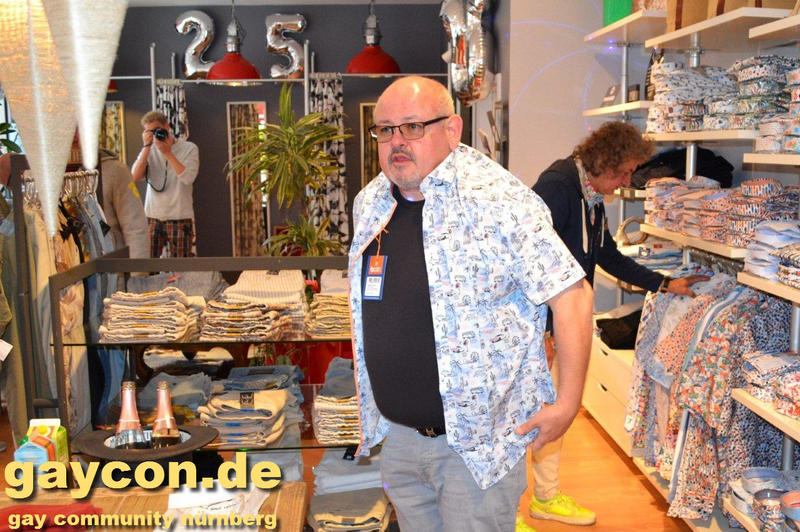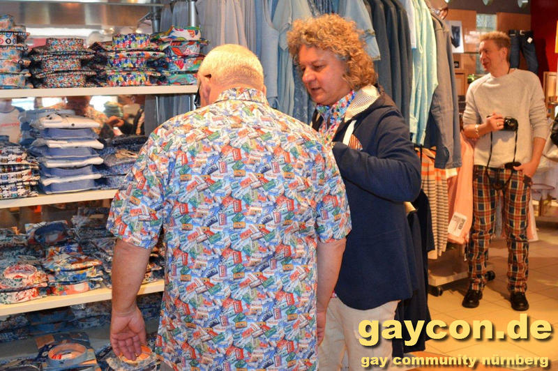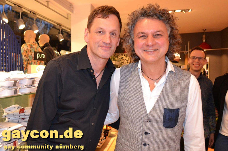 Nachdem Harald im Alter von 19 Jahren in die erste eigene Wohnung zog, ließ auch die erste feste Beziehung nicht lange auf sich warten. Zu seinem damaligen Freund, ebenfalls aus der Modebranche, hat er noch heute einen guten Kontakt. Sein Coming out bezeichnet er als heftig in einer Zeit des Verheimlichens, wo vor Einlass in Lokale wie das Savoy oder Why Not noch geklopft oder geklingelt werden musste. „Im Why Not trafen sich Nutten, Zuhälter, Schwule und schrille Typen. Es war aber auch eine coole Zeit“, erinnert er sich. Beim Faschingsball im Lessing-Saal des Deutschen Hofs hat er im sexy Frauenkostüm manchen Heteros den Kopf verdreht. „Ihr glaubt nicht, wie viele Telefonnummern ich bekommen habe! In hochhackigen Schuhen laufen war kein Problem für mich, nach vielen Jahren Training im Formationstanz“, schmunzelt Harald. „Heute lebe ich offen und verstecke mich nicht. Dafür baggern mich gelegentlich Mädels an. Für viele bin ich der Verrückte mit dem Männerladen.“ In aller Stille feiert er mit seinem Lebenspartner Uwe noch ein zweites schönes Jubiläum in diesem Jahr, sie sind seit zehn Jahren zusammen. Schicksalstag war der 9. April 2009 im Lokal Bert´s in der Südstadt. „Ich saß in der Kneipe meines besten Freundes und klagte ihm meinen Frust darüber, dass ich gerne eine Beziehung hätte. Bert ließ mich in diesem Zustand nicht heim und hat mir immer wieder nachgeschenkt“, grinst Harald. „Uwe hatte in der Meistersingerhalle gearbeitet und konnte an diesem Tag früher raus. Auch ihn zog es ins Bert’s und so kam es, dass wir plötzlich nebeneinander saßen.“ Das Schicksal arrangierte die Zeiten genau richtig. Heute gehen sie gerne gemeinsam auf zahlreiche Veranstaltungen in der Nürnberger Community. Haralds eigene Feier zum 20. Firmenjubiläum Ende März hat beiden viel Spaß bereitet. Zahlreiche Freunde, Stammkunden und Geschäftspartner schauten vorbei. Zukunftspläne: Sieben Jahre will er seinen Laden noch behalten. Was bei ersten Stammkunden schon die Frage auslöst, wo sie sich denn anschließend unter Fachberatung in die bunten schrillen Stoffe werfen sollen. Der trotz allen Erfolgs völlig normal und sympathisch gebliebene Herrenausstatter nimmt‘s gelassen: „Wenn bis dahin alles so läuft wie bisher, dann bin ich zufrieden.“