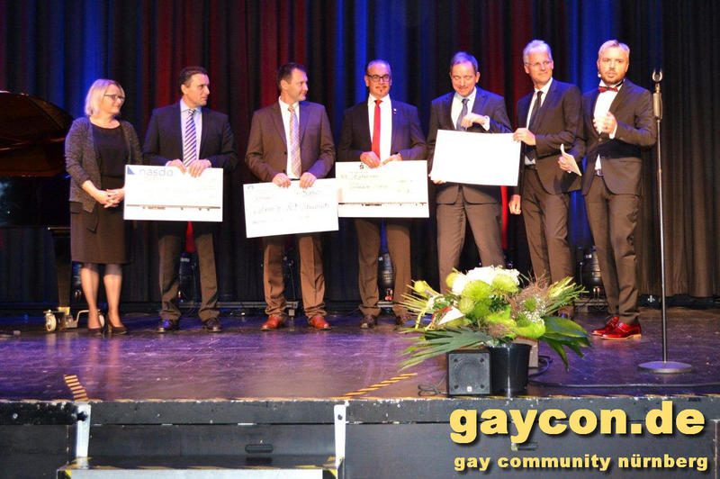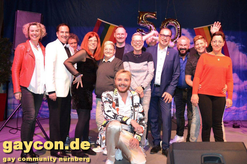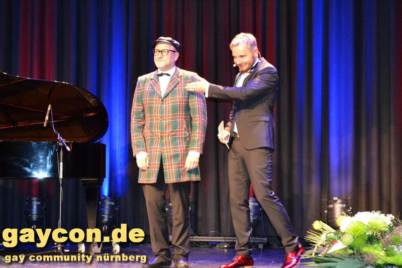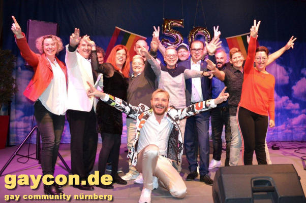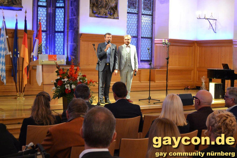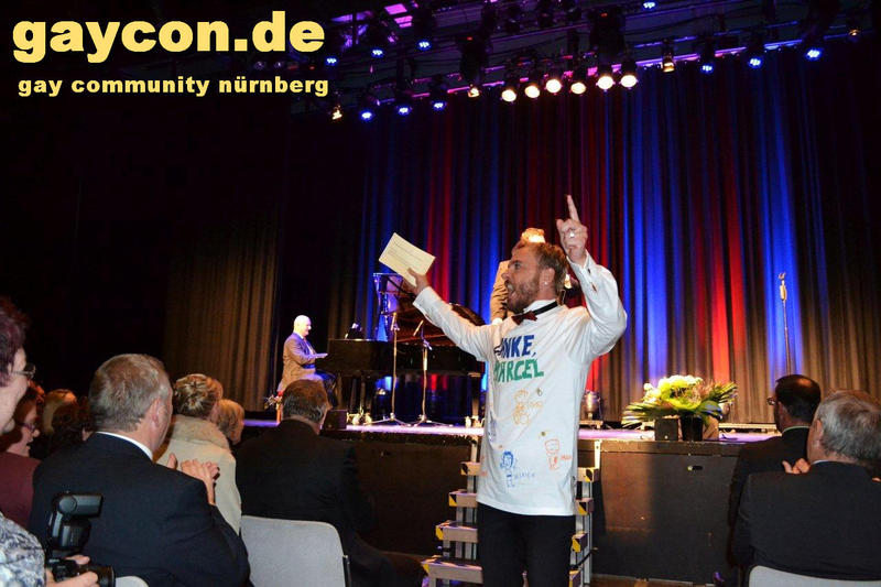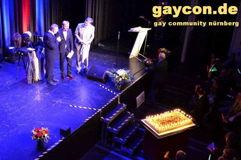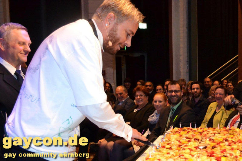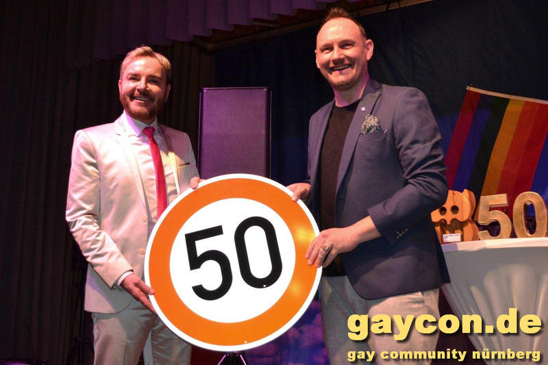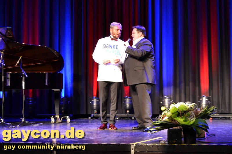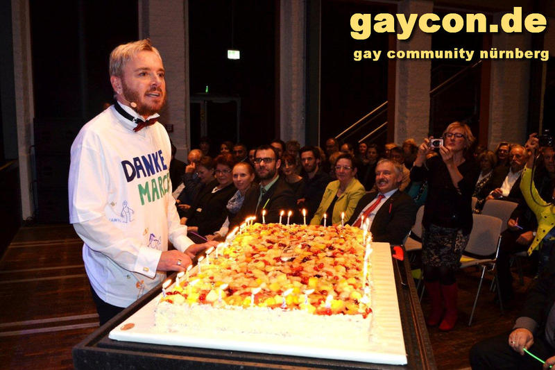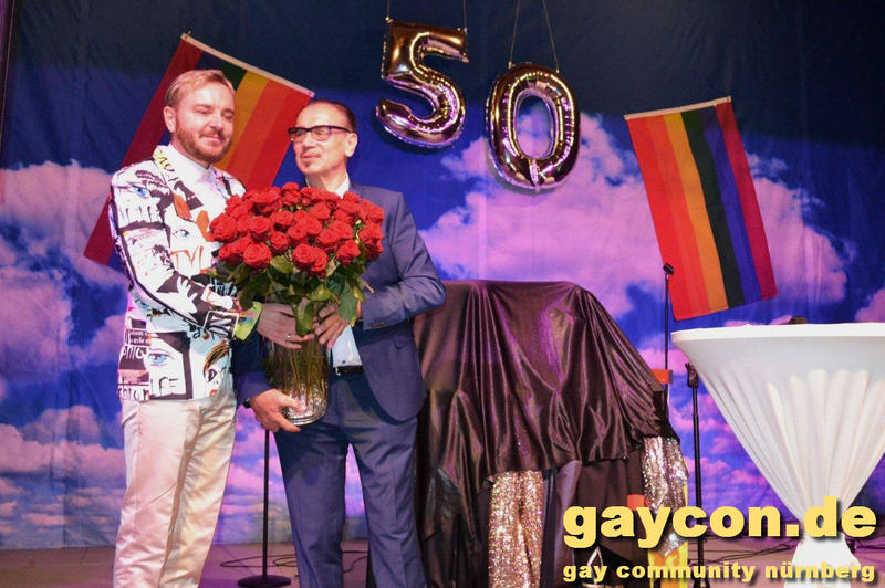 Am zweiten April-Samstag moderierte Jörg Deffner ebenso heiter wie nachdenklich durch eine Festgala, für die gleich drei Anlässe standen: 50 Jahre Lebenshilfe Nürnberger Land, 50. Geburtstag Marcel Schneider und gleichzeitig dessen 50. Benefiz-Veranstaltung. Ein bunter Abend, mit Party und Tanzstimmung, Emotionen und zahlreichen Überraschungen. 160 geladene Gäste feierten gemeinsam im Gemeindezentrum in Rednitzhembach, als Marcel unter dem Sound der Pet Shop Boys mit „Always on my Mind“ die Bühne enterte. Gern gestand er ein, dass er ein Fan der 80er Musik ist. Die Theatergruppe Mimulus inszenierte ein gelungenes Stück, das mit viel Applaus honoriert wurde. Es gab ein Dingsda Ratespiel von den Frühförderkindern auf Video-Leinwand. Mark O. Vincent brachte das Publikum als Elvis, Tina Turner sowie Howie oder dem King of Pop Michael Jackson, gleichermaßen zum Tanzen. Mit der Nürnberger Hip-Hop Band Brak`Lul hallten die moderneren Rhythmen durch den Saal. Zwischen den Bühnendarbietungen verwöhnte der Gastgeber seine Freunde mit einem opulenten Büffet. Überraschungsgast zu späterer Stunde war Wortakrobat Oliver Tissot, der mit zahlreichen Anekdoten aus dem Privatleben von Marcel überraschte. Man mag es kaum glauben, aber Marcel hat mit seinen 49 Benefiz-Abenden in 17 Jahren 475.000 Euro gesammelt. An diesem Abend kamen über 6.000 Euro dazu. Für benachteiligte Menschen, „die nicht auf der Sonnenseite des Lebens stehen“. Neben Politikern, Olympiasiegern, Bürgermeistern, waren auch viele Freunde aus der Community dabei. Denn seinen Mann Heinz Röttenbacher hatte Marcel einst im Szenelokal Walfisch kennen und lieben gelernt. Nicht ohne Grund hingen am Bühnenhintergrund zwei große Regenbogenflaggen. Als Symbol für Vielfalt, Toleranz und Akzeptanz. (NK)