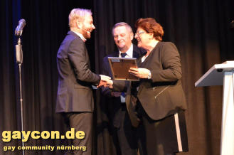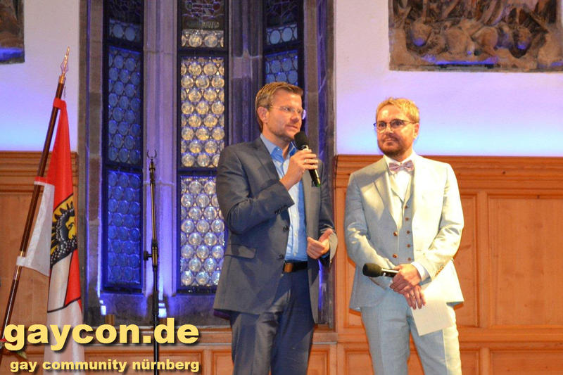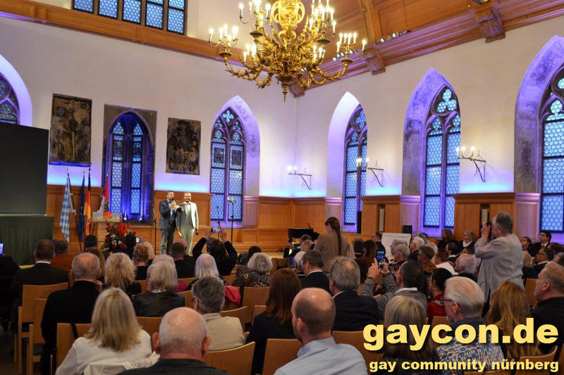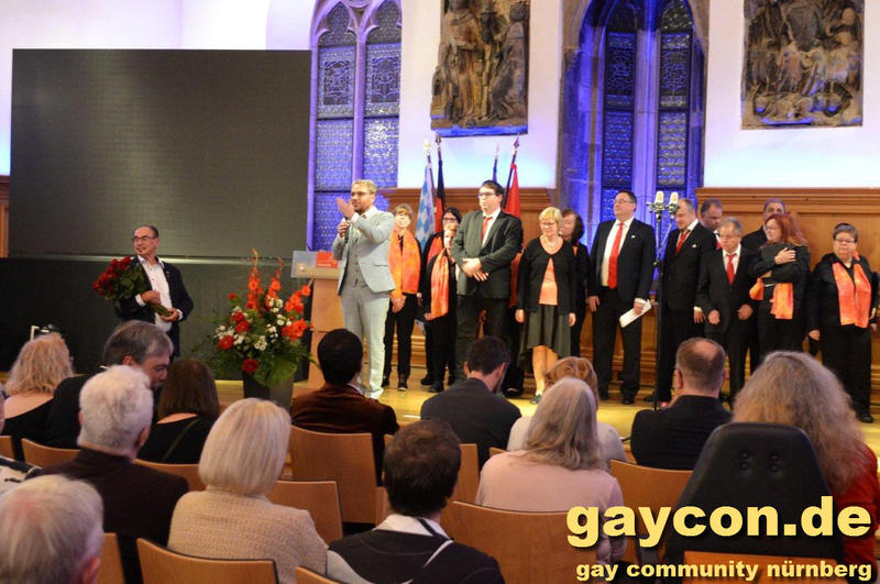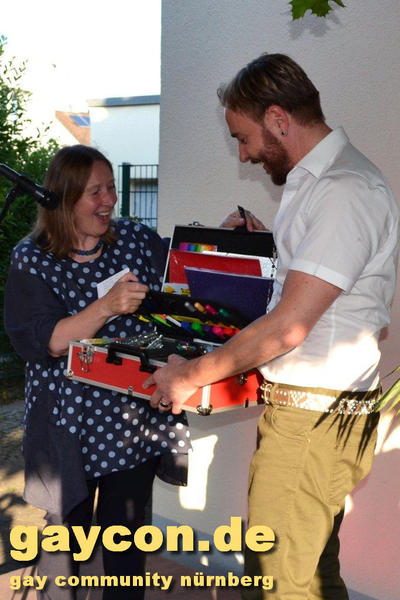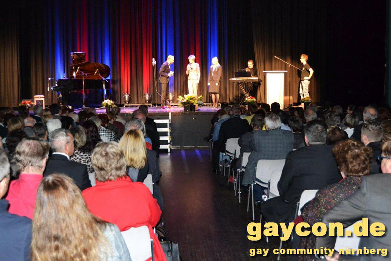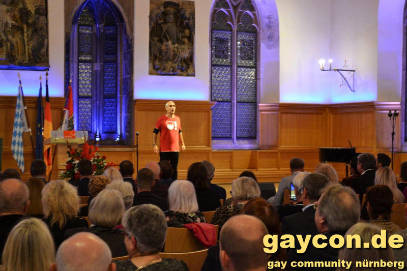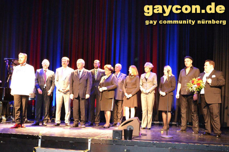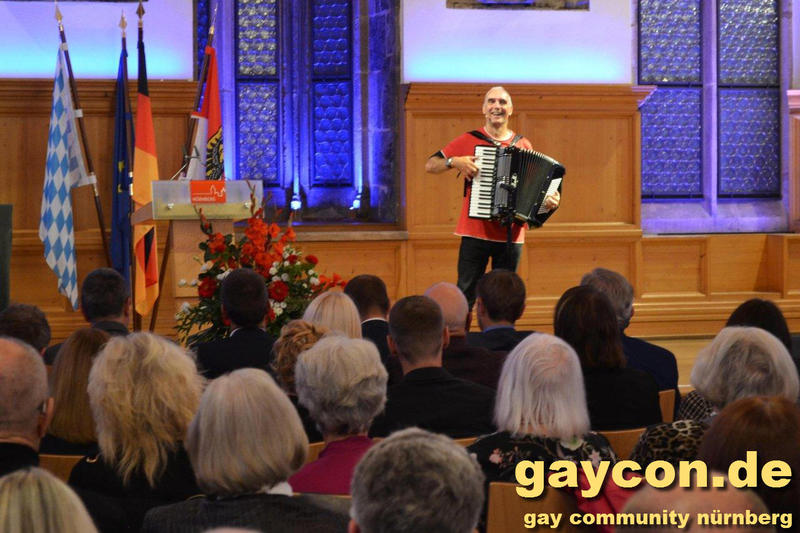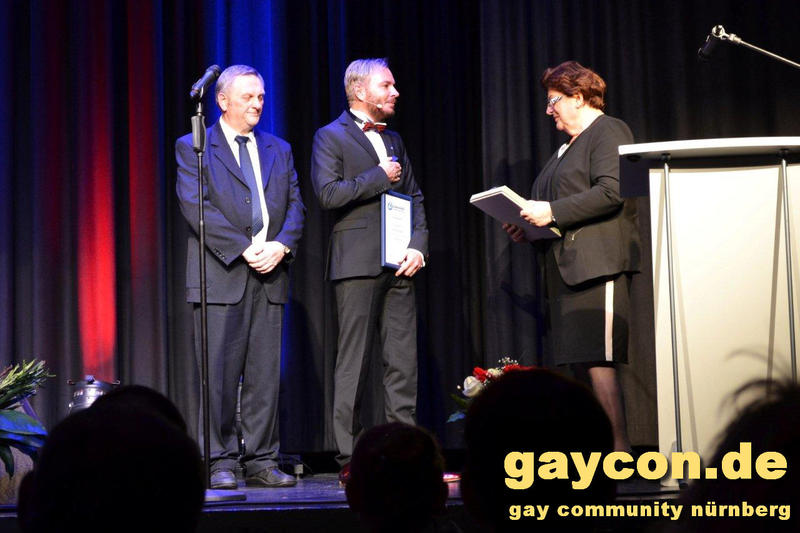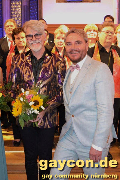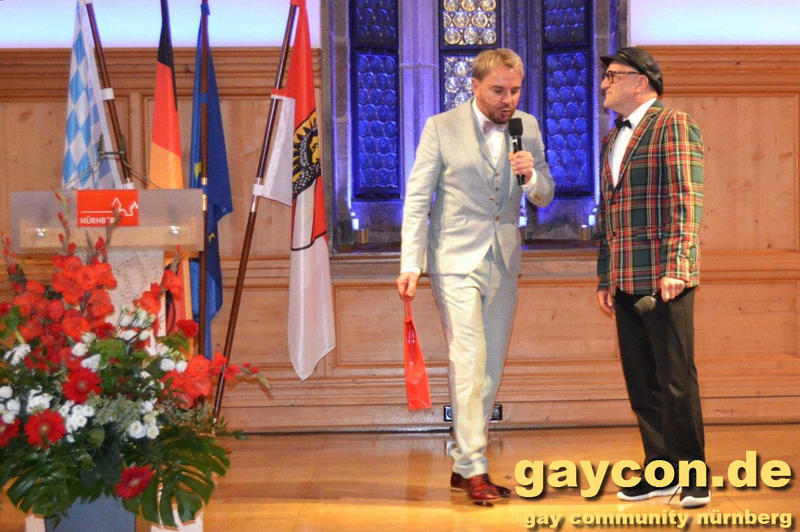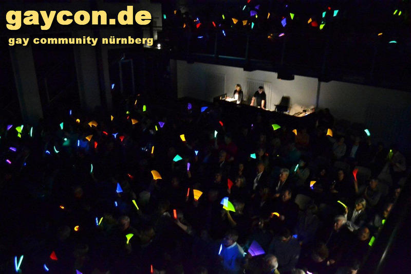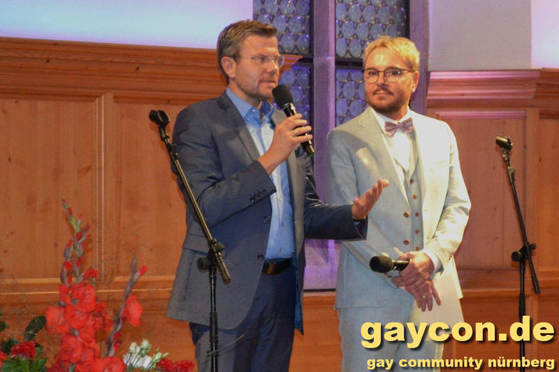 Am zweiten April-Samstag moderierte Jörg Deffner ebenso heiter wie nachdenklich durch eine Festgala, für die gleich drei Anlässe standen: 50 Jahre Lebenshilfe Nürnberger Land, 50. Geburtstag Marcel Schneider und gleichzeitig dessen 50. Benefiz-Veranstaltung. Ein bunter Abend, mit Party und Tanzstimmung, Emotionen und zahlreichen Überraschungen. 160 geladene Gäste feierten gemeinsam im Gemeindezentrum in Rednitzhembach, als Marcel unter dem Sound der Pet Shop Boys mit „Always on my Mind“ die Bühne enterte. Gern gestand er ein, dass er ein Fan der 80er Musik ist. Die Theatergruppe Mimulus inszenierte ein gelungenes Stück, das mit viel Applaus honoriert wurde. Es gab ein Dingsda Ratespiel von den Frühförderkindern auf Video-Leinwand. Mark O. Vincent brachte das Publikum als Elvis, Tina Turner sowie Howie oder dem King of Pop Michael Jackson, gleichermaßen zum Tanzen. Mit der Nürnberger Hip-Hop Band Brak`Lul hallten die moderneren Rhythmen durch den Saal. Zwischen den Bühnendarbietungen verwöhnte der Gastgeber seine Freunde mit einem opulenten Büffet. Überraschungsgast zu späterer Stunde war Wortakrobat Oliver Tissot, der mit zahlreichen Anekdoten aus dem Privatleben von Marcel überraschte. Man mag es kaum glauben, aber Marcel hat mit seinen 49 Benefiz-Abenden in 17 Jahren 475.000 Euro gesammelt. An diesem Abend kamen über 6.000 Euro dazu. Für benachteiligte Menschen, „die nicht auf der Sonnenseite des Lebens stehen“. Neben Politikern, Olympiasiegern, Bürgermeistern, waren auch viele Freunde aus der Community dabei. Denn seinen Mann Heinz Röttenbacher hatte Marcel einst im Szenelokal Walfisch kennen und lieben gelernt. Nicht ohne Grund hingen am Bühnenhintergrund zwei große Regenbogenflaggen. Als Symbol für Vielfalt, Toleranz und Akzeptanz. (NK)