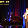 Das „Erfreulichste sei die Tatsache, dass dank zahlreicher Sponsoren immer die Gesamteinnahmen den Spendenbegünstigten zufließen können. Heute Abend treten auch alle Künstler ohne Gage auf“, so Marcel. Die Gruß- und Dankesworte aus Politik und von der Lebenshilfe waren löblich punktgenau gefasst, so dass viel Zeit für das fulminante Unterhaltungsprogramm blieb. Wortakrobat Oliver Tissot verstand es wie immer, Humor mit Nachdenklichem zu verstricken, die oberpfälzische Wuchtinvasion Lizzy Aumeier erntete Lachsalven. Für Musik von Gospel über Parodie bis Klassik sorgten Oliver Schott feat. The Golden Gospel Choir, Marc O. Vincent mit Kultstars in Concert und der Startenor Alexander Herzog. Alle Künstler liefen derart zur Höchstform auf, dass sich das Zugaben fordernde Publikum erst nach über vier Stunden zufriedengab. Zum Abschluss verteilte Marcel persönlich im Foyer noch den knappen Quadratmeter Torte an alle. Einfach toll!