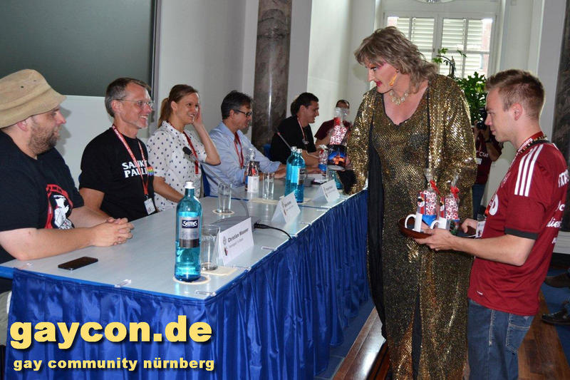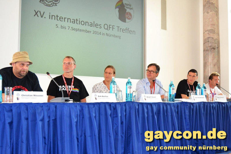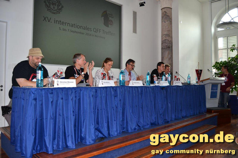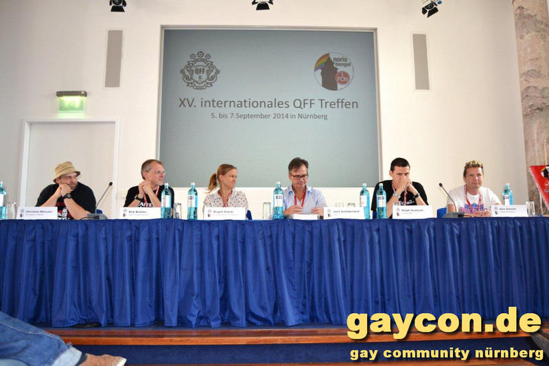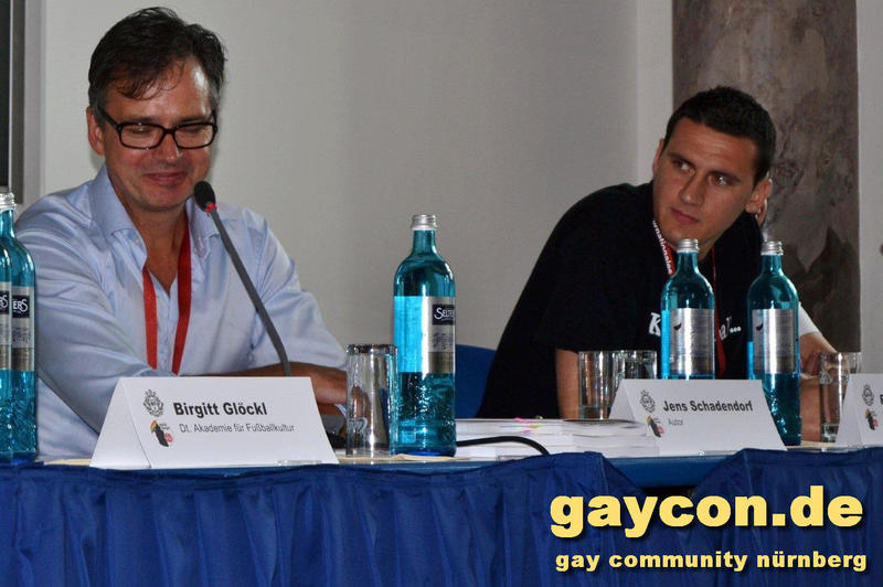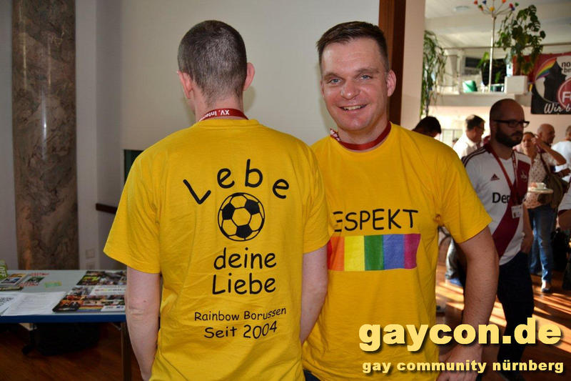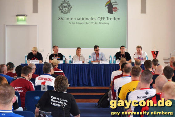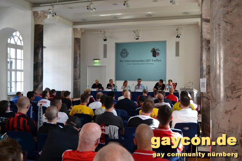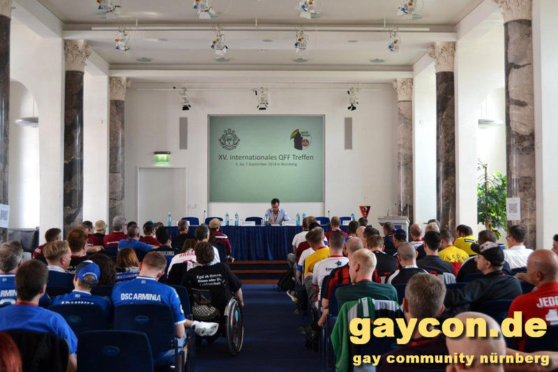 Am ersten Wochenende im September fand das 15. Internationale Queer Football Fanclub (QFF) Treffen im großen Marmorsaal des Presseclubs in der Nürnberg Akademie am Gewerbemuseumsplatz statt. Die Ausrichter, der queere Fanclub des 1.FCN „Die Norisbengel“, sorgten rund um die QFF-Tagung für ein abwechslungsreiches Rahmenprogramm im Herzen der Frankenmetropole. Dass der 1.FCN treue Fans mit enttäuschenden Leistungen vor den Kopf stößt, daran hat sich der Franke im Laufe seiner Geschichte derart abgefunden, dass er diese Liebe trotzdem nicht bereut. Doch auch seinen queeren Fanclub, die Norisbengel, blamierte der Club vor rund 100 Teilnehmern aus Deutschland und dem angrenzenden Ausland mit einer kurzfristigen Absage. Unter der Vorgabe von Termingründen schaffte es der Verein nicht, auch nur einen einzigen aktiven Spieler zur zweistündigen Podiumsdiskussion abzuordnen. Wohlgemerkt an einem spielfreien Wochenende, soll man das glauben? Umso erfreulicher, dass Lizenzspieler Ralph Gunesch (FC Ingolstadt 04, früher St. Pauli) für die Fragen der Teilnehmer aus 25 queeren Fanclubs zur Verfügung stand. Zur großen Diskussion am Samstagnachmittag fanden sich außerdem Christian Mössner vom Fanmagazin „Ya Basta!“, Dirk Brüllau Pressesprecher der Queer Football Fanclubs, Birgitt Glöckl von der dt. Akademie für Fußball Kultur, Alex Schmitt von den Supporters Nürnberg, Hannes Orth Fanbeauftragter des 1.FCN und als Moderator Jens Schadendorf, Autor von „Der Regenbogenfaktor“, auf dem Podium im Marmorsaal ein. Zu Beginn der Diskussion las Jens Schadendorf einige Kostproben aus seinem Buch „Der Regenbogenfaktor“ vor, die auch den queeren Fußball-Fanclubs gewidmet sind. Er geht auf den Ex-Nationalkeeper Jens Lehmann ein, der Bizarres von sich gab, wie „Hitzlsperger habe ‚von seiner Spielweise‘ her ‚überhaupt nicht den Anlass gegeben‘, dass man ‚hätte denken können, da ist irgendetwas‘.“ Schadendorf zitiert aber auch Meinungsbildner wie Ex-Spiegel-Kulturchef Matthias Mattusek, der sich in einem Beitrag als „homophob. Und das ist auch gut so“ outete oder auf Norbert Blüm, der einmal die Forderung erhob, dass Schwule, Lesben und andere sexuelle Minderheiten nicht die gleichen Rechte wie Heterosexuelle haben sollen.