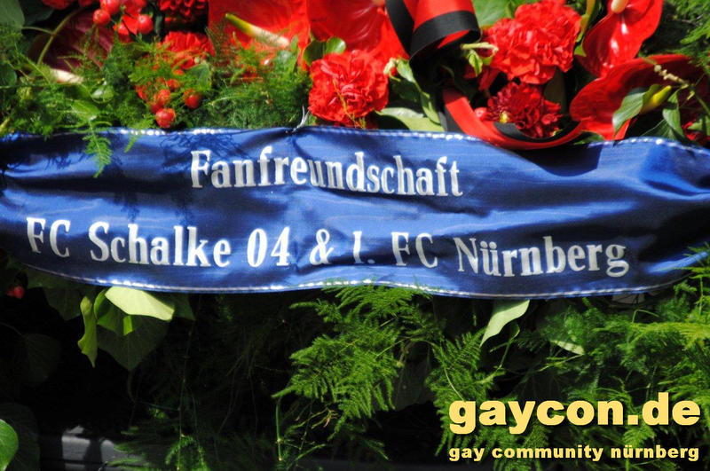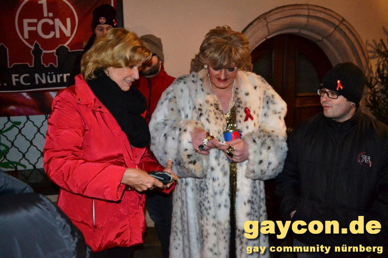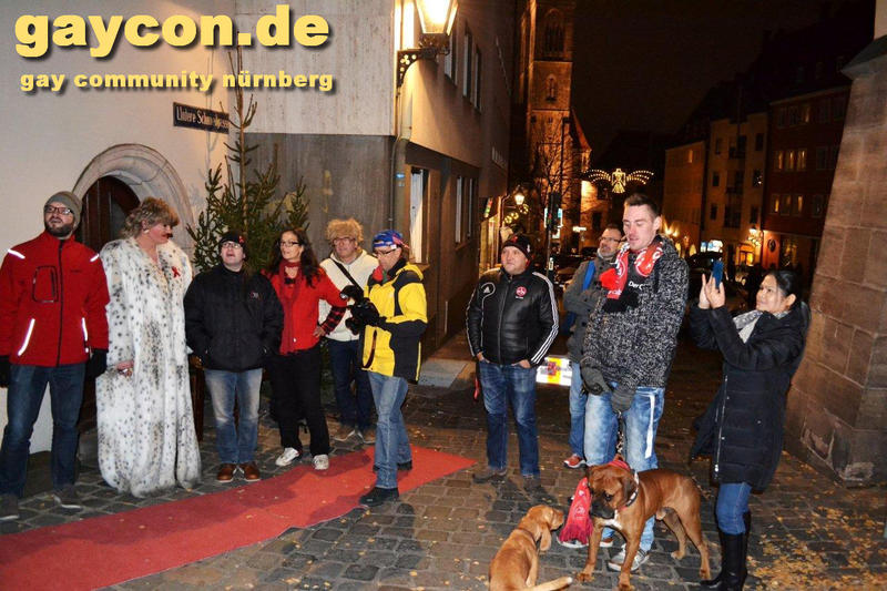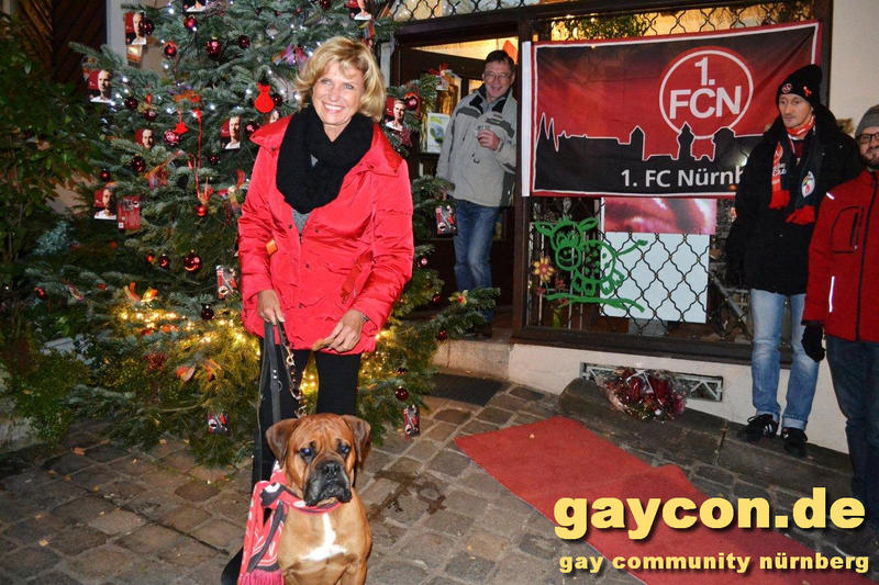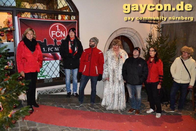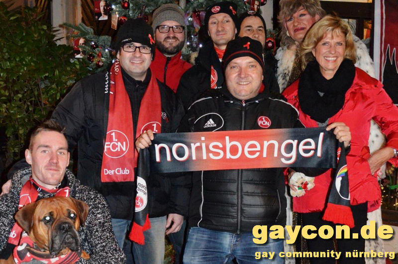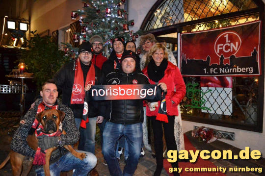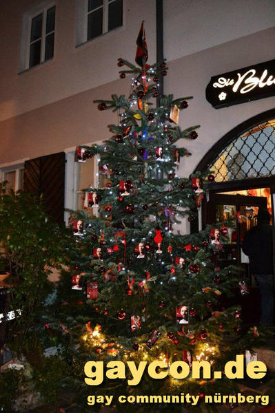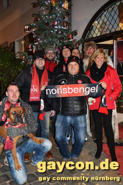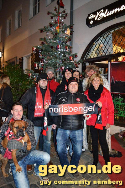 Seit einigen Jahren steht traditionell in der Sebalder Altstadt Nürnbergs vor dem Laden der „Blumenfee“ (Untere Schmiedgasse 4/ beim Albrecht-Dürer-Platz) der „offizielle FCN Weihnachtsbaum“. Selbstverständlich sind alle aktuellen Club-Spieler auf Schmuck-Karten zu sehen. In diesem Jahr haben die Norisbengel, der queere Fanclub des 1.FCN, diesen Baum am Samstag den 29. November 2014 dekoriert! Neben den klassischen Club-Farben Rot/Schwarz wurde der Baum mit Regenbogenschleifen und Fahne geschmückt. Zur FCN - Baumeröffnung war auch MdB Dagmar Wöhrl zu Gast. Trotz Zusage im Vorfeld fand leider auch diesmal wieder kein Vertreter des 1.FCN den Weg in die Nürnberger Altstadt.