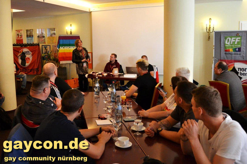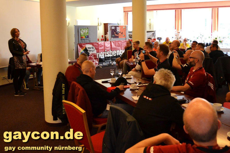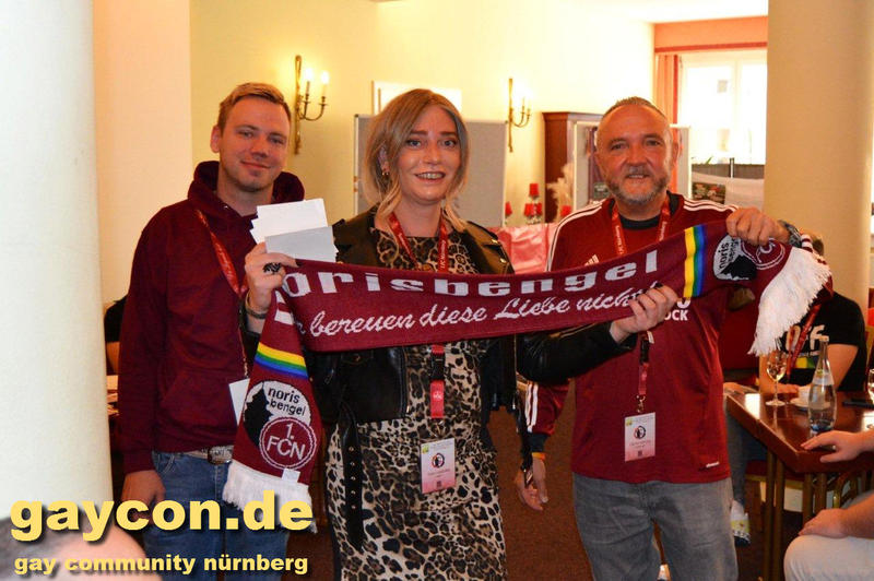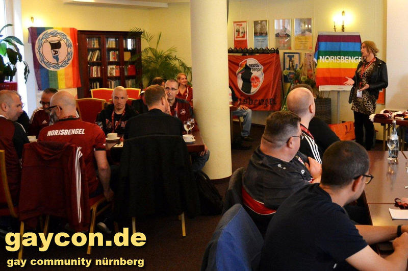 Zum zweiten Mal richteten die Norisbengel, offizieller queerer Fanclub des 1. FCN, die überregionale Tagung am vierten September-Wochenende in der Frankenmetropole aus. Leider waren mit rund 30 Teilnehmenden deutlich weniger nach Nürnberg angereist als ursprünglich erwartet. Als Tagungszentrum fungierte der Saal des Restaurants im Literaturhaus. Queere Themen rund um den Fussball standen im Mittelpunkt. Als Zugabe fand noch ein Kulturprogramm, wie Stadtführungen in der Altstadt und am ehemaligen Reichsparteitagsgelände, ein gemeinsames Mittagessen im Hauptlokal im Erdgeschoss, sowie ein „Feier-Abend“ in einer Szenekneipe, statt. Zum öffentlichen Teil der Veranstaltung am Samstagvormittag kamen einige Personen aus Politik und Gesellschaft vorbei und überbrachten persönliche Grußworte. Mitglieder des Fanprojekts Nürnberg waren „als stille Beobachter“ ebenfalls unter den Gästen dabei. Ein zentrales Thema ist nach wie vor die Diskriminierung im Sport. Nach einer Studie würden queere / trans-Jugendliche deshalb weniger Sport betreiben als heterosexuelle Jugendliche, berichtete Tessa Ganserer (Bündnis’90/ Die Grünen; MdB). Die Diskussion über queerfeindliche Straftaten komme erst darüber auf, wenn ein Opfer stirbt (Malte). Es sei ein gesellschaftliches Problem, dass sich die breite Öffentlichkeit ansonsten nicht dafür interessiere. Politik müsse Haltung zeigen und Vorbild sein. In Deutschland sei es auch einmalig, dass eine Stadt wie Nürnberg mit 500.000 Einwohnern einen queeren Aktionsplan erstellt hat. Eine Grußbotschaft vom 1.FCN Aufsichtsrat und dem Fanbeauftragten des Clubs kam von Katharina Fritsch, Leiterin der Unternehmenskommunikation. Sie ist inzwischen auch für die Bereiche Mitglieder, Fans und Fußballerlebnis beim Club verantwortlich. „Wir freuen uns, dass die Norisbengel zu den aktivsten Fanclubs des 1.FCN gehören. Bei der Saison-Eröffnung waren sie mit einem Stand am Stadion vertreten. Der 1.FCN ist bunt, alle sind willkommen.“ Grußworte aus dem Landtag gab es von Florian Siekmann (Bündnis‘90/ Die Grünen; MdL). Er würdigte die Arbeit der QFF. „Dass heute Fußballer mit Regenbogenbinde auftreten, ist der Sichtbarkeit und Arbeit von den queeren Fußballfanclubs zu verdanken.“ Grußworte der Stadt Nürnberg überbrachte der 3. Bürgermeister Christian Vogel (SPD): „Der Sport muss offen sein. Vor einem Jahr wurde beim Spiel Deutschland gegen Ungarn in München von der UEFA verboten, die Allianz-Arena in Regenbogenfarben zu zeigen. Ich hatte daraufhin das Nürnberger Max-Morlock-Stadion angewiesen farbig anzustrahlen. Ein Signal der Stadt Nürnberg als Stadt der Menschenrechte, ein Zeichen der Akzeptanz. Dazu kamen über Facebook neben vielen positiven Rückmeldungen auch einige negative, deutlich unter der Gürtellinie. Vier besonders heftige wurden bei der Polizei angezeigt“, betonte Vogel. “Ein Hinweis an die Fußballfans: Das Max-Morlock-Stadion ist in den letzten Zügen. Eine europaweite Ausschreibung soll für den 1.FCN und die Stadt Nürnberg eine moderne Stadion-Spielstätte sowie eine Entwicklung des Umfelds aufzeigen. Das wird eine große Herausforderung.“, ergänzte der Bürgermeister. Der Fanbeauftragte des 1.FCN Jürgen Bergmann kam später überraschend hinzu und sprach ein paar spontane Worte an die Teilnehmenden der Tagung: „Ihr (die Norisbengel) seid fester Bestandteil der Fanszene des 1.FCN!“ Weitere Grußbotschaften sollten noch am Nachmittag folgen. Persönlich von Birgitt Glöckl (Deutsche Akademie für Fußballkultur) und von Sven Lehmann (Sprecher der Queer Politik der Bundesregierung) per Video.