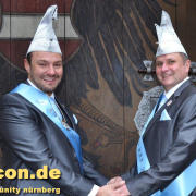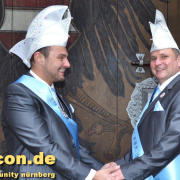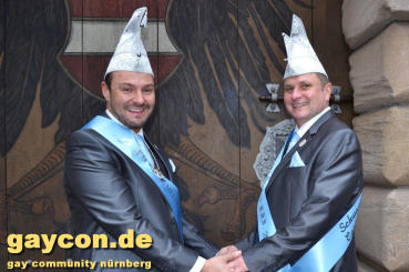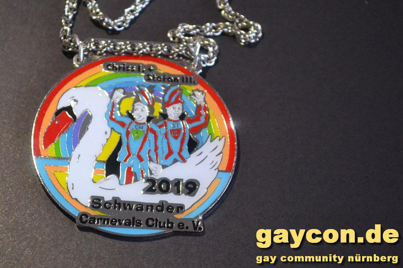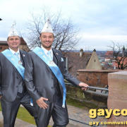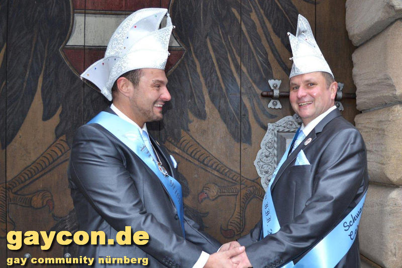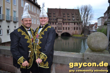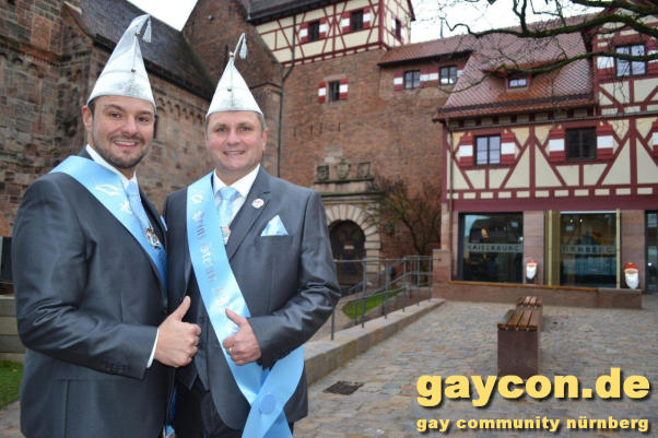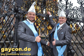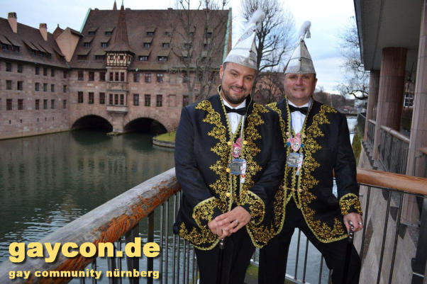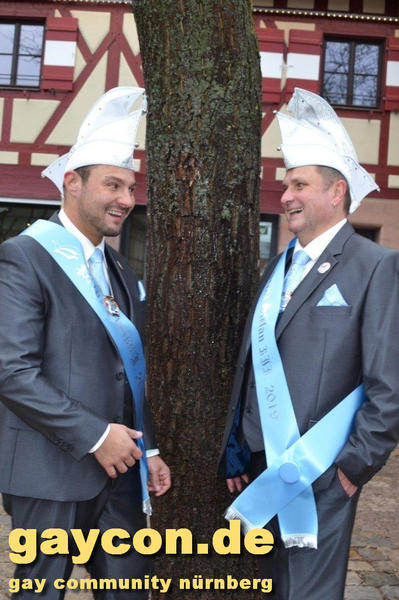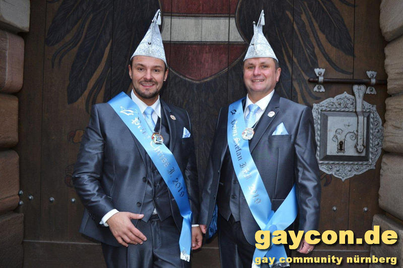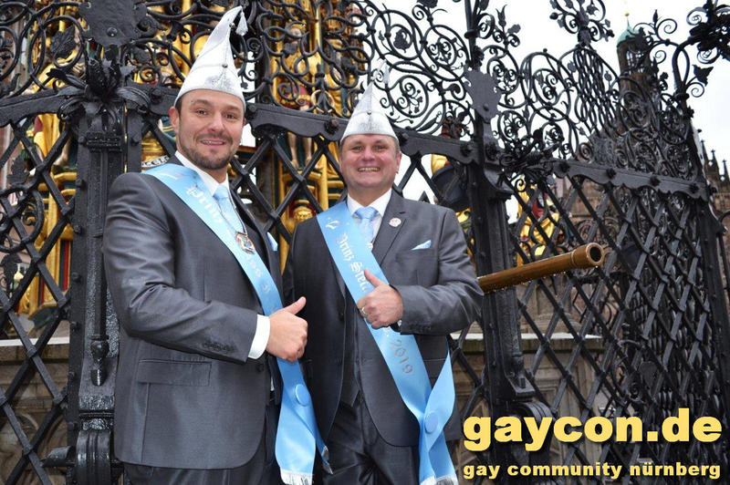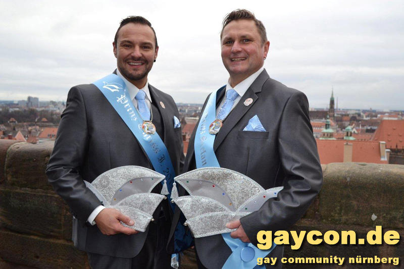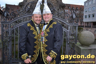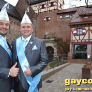 Ein neues Männerprinzenpaar regiert über das Narrenvolk in Franken! Seit der Inthronisation des Schwander Carnevals Clubs (SCC) am 12. Januar 2019 sind Stefan Knorr (52) und sein Lebensgefährte Christof Reichel (40) offiziell im Amt. Die Faschingsprinzen werden als Chriss I. Und Stefan III. zahlreiche Termine wahrnehmen. Auf ihren Wunsch wurde der Orden mit einem Regenbogen gestaltet. Damit hat nun auch Mittelfranken das erste gleichgeschlechtliche Prinzenpaar. Oberfranken führt allerdings schon mit zwei Paaren in den Geschichtsbüchern: Gerald Fischer & Dirk Stauch „Langstädter Fousanachtern“ (2015/2016) und Ralf & Mathias Kühne „Coburger Narrhalla“ (2017). Als hoheitlicher Besuch kamen nun auch Stefan und Christof zum Fotoshooting plus GAYCON Interview auf die Kaiserburg in die Frankenhauptstadt.